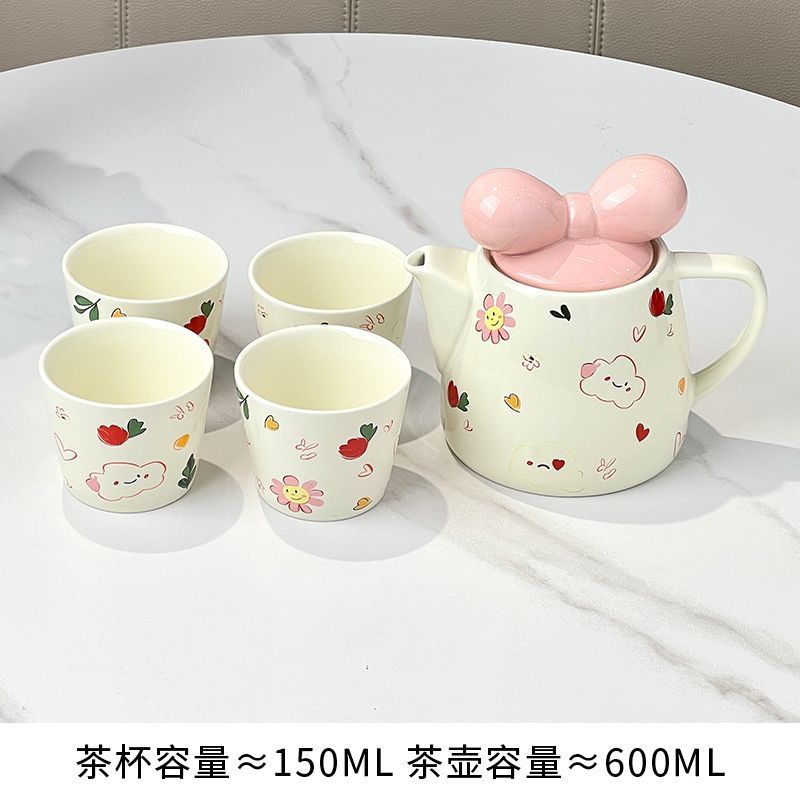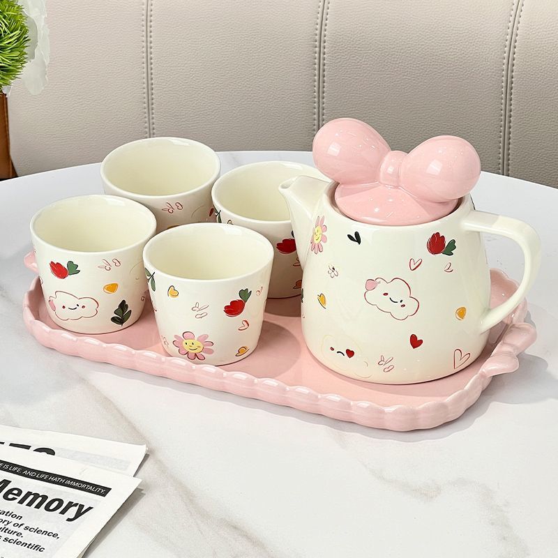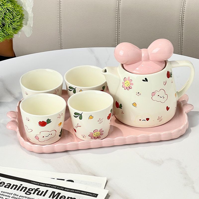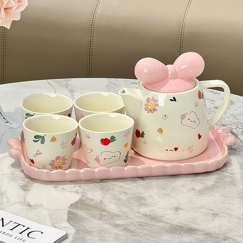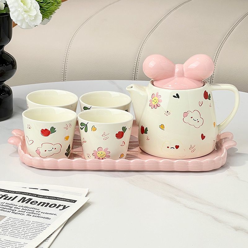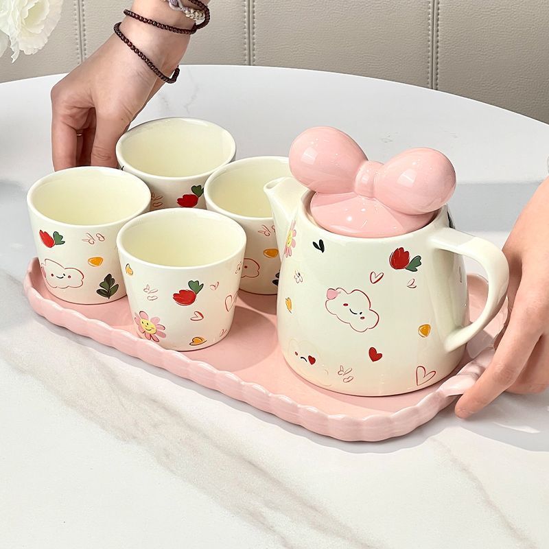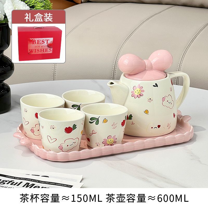 Подарочная коробка [4 чашки, 1 горшок, 1 тарелка] набор для воды с бантиком; Pubao [4 чашки, 1 горшок] набор для воды с бантом