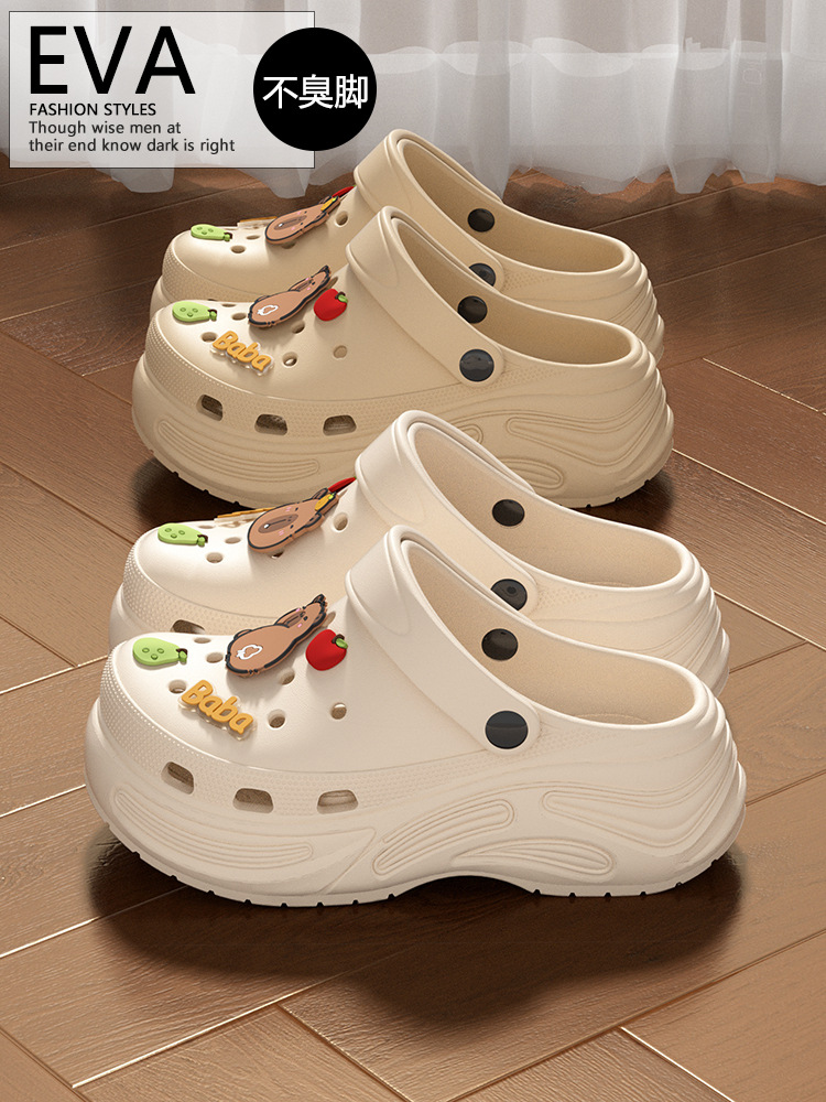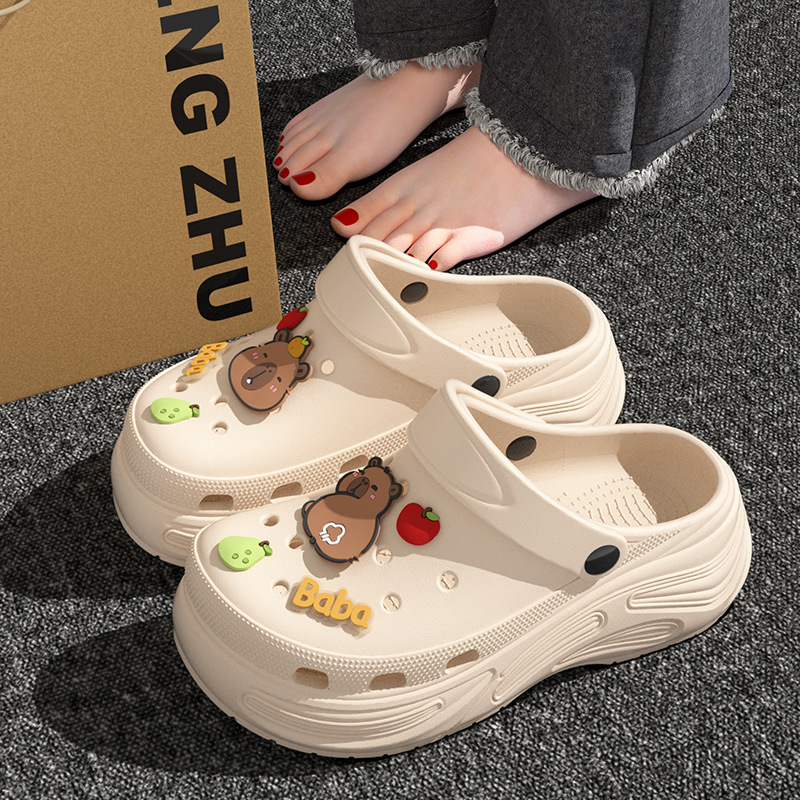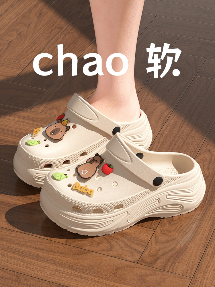 Kapibala Croc Shoes, женские летние утолщенные мягкие клетчатые противоскользящие белые туфли для медсестры, модные и удобные в сочетании с пляжной обувью