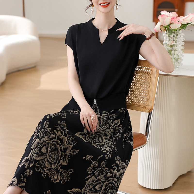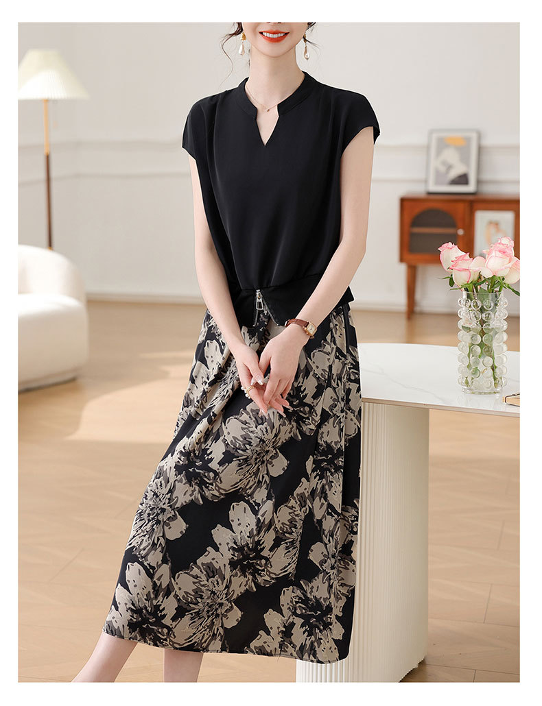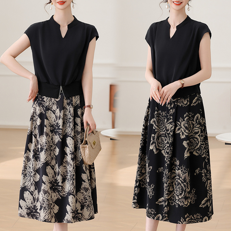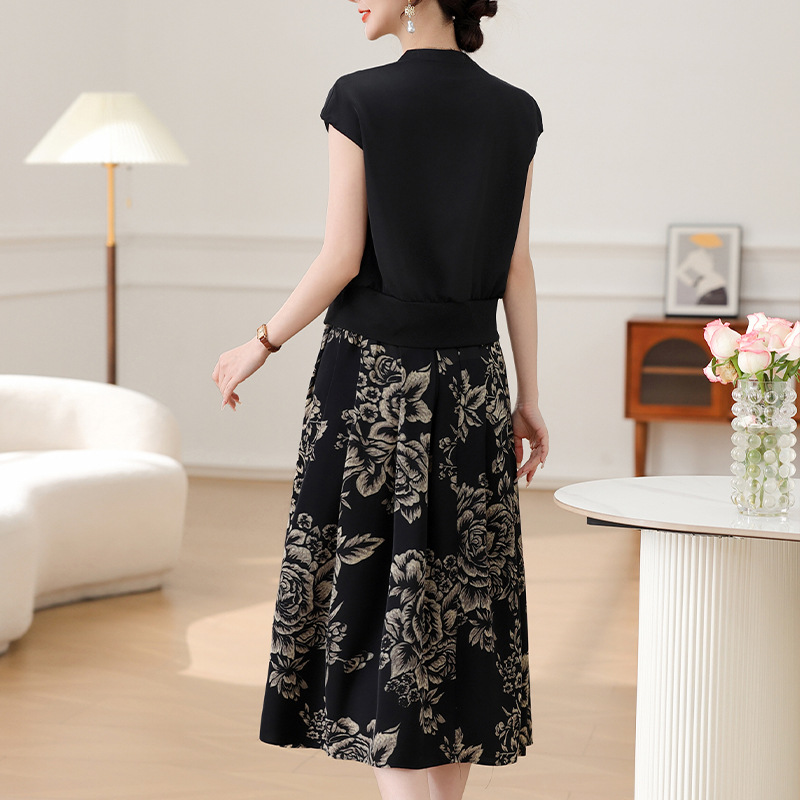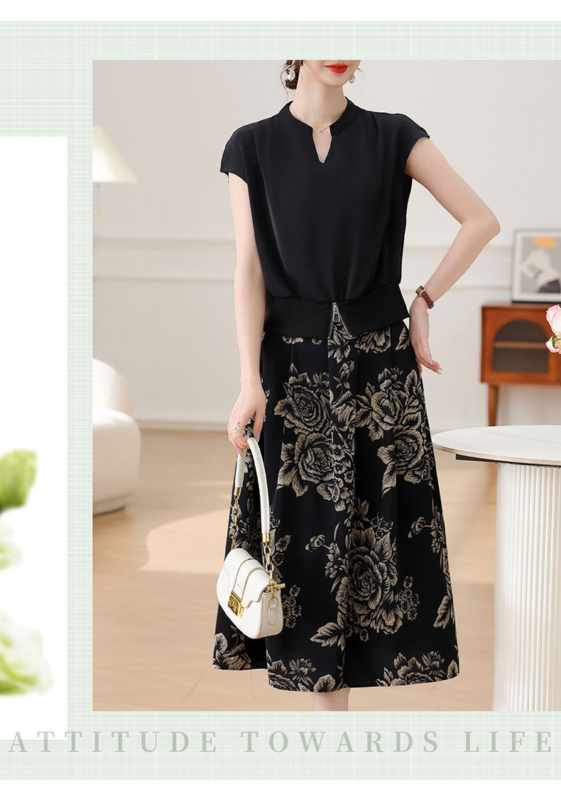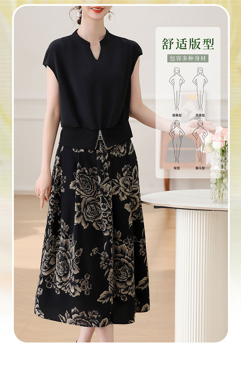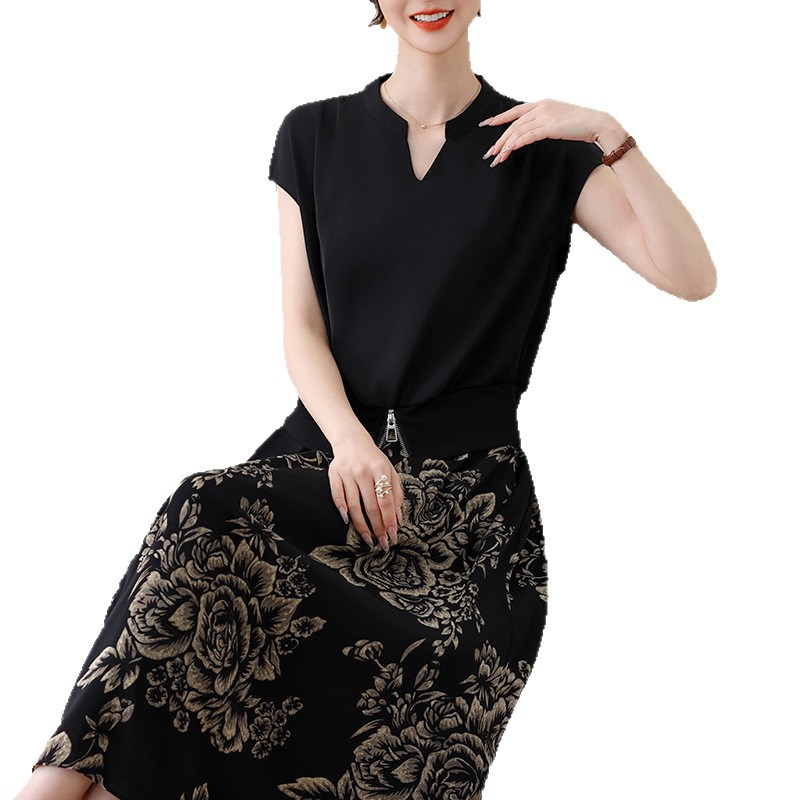 Летний костюм для мамы, модный летний элегантный женский костюм среднего и пожилого возраста, модная юбка с короткими рукавами, комплект из двух предметов