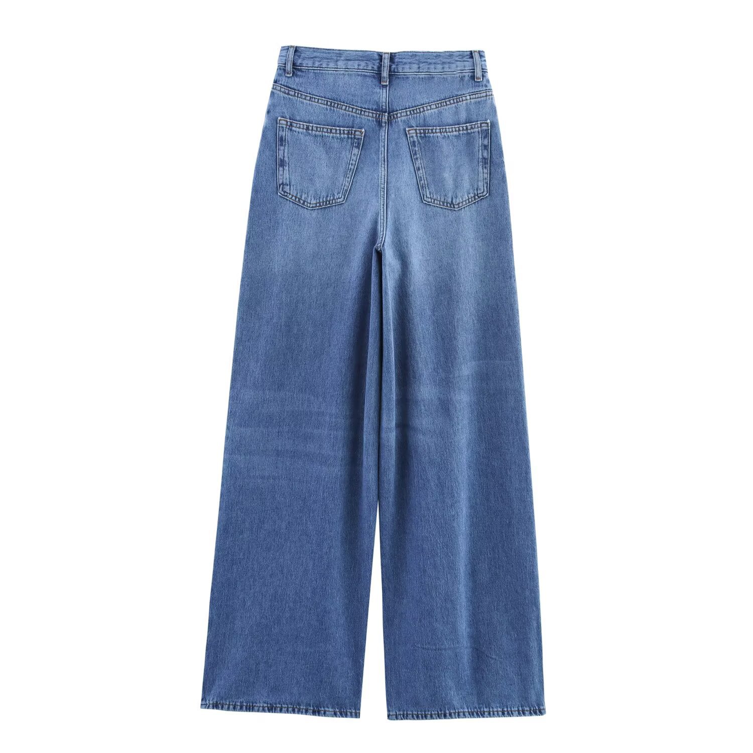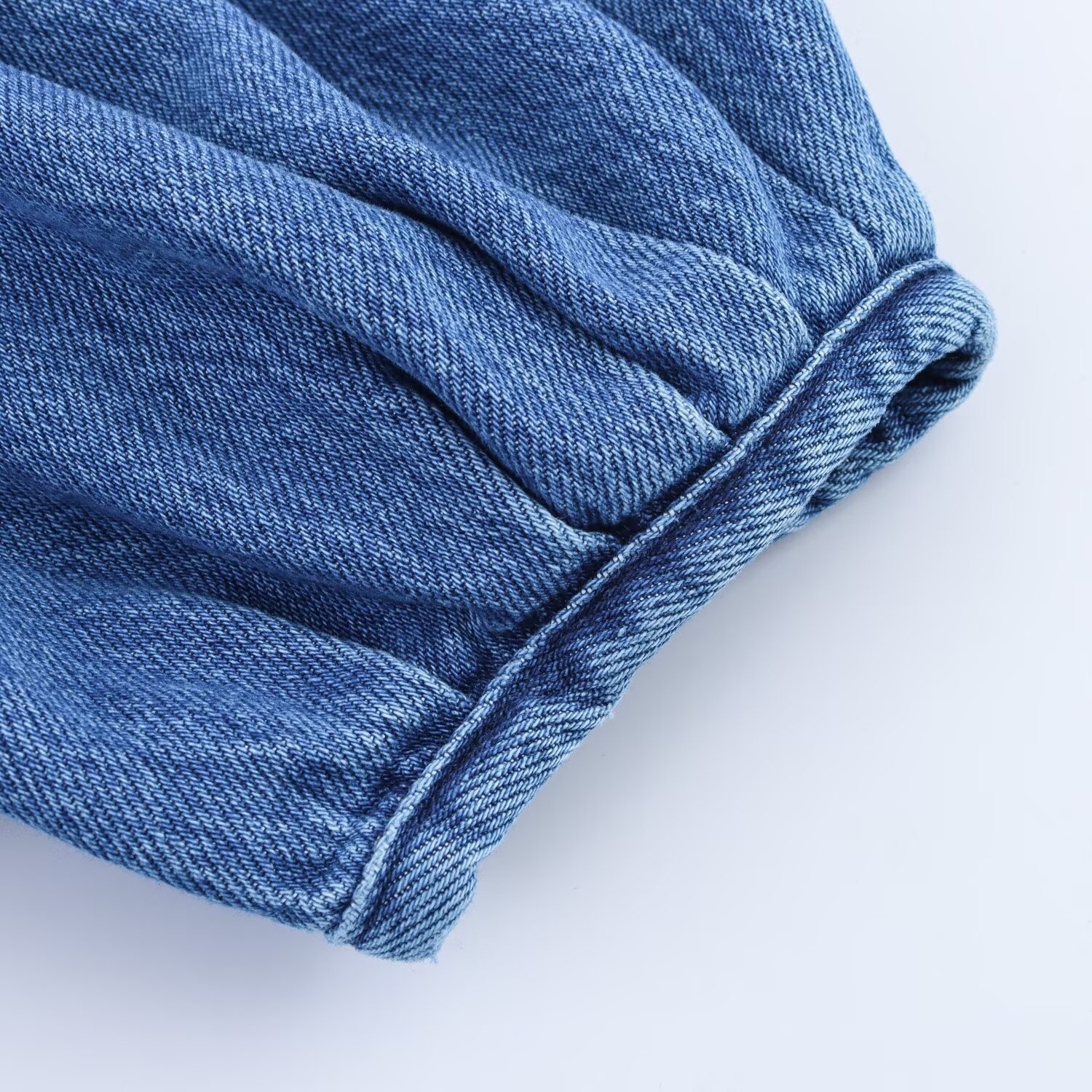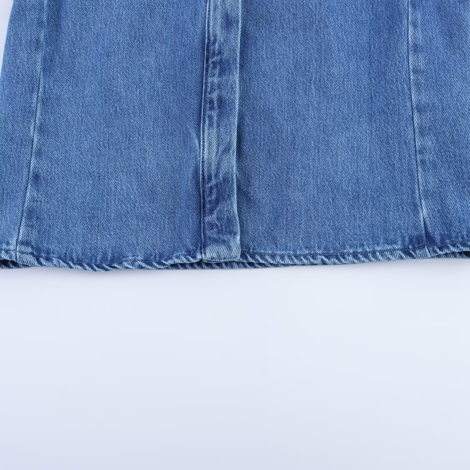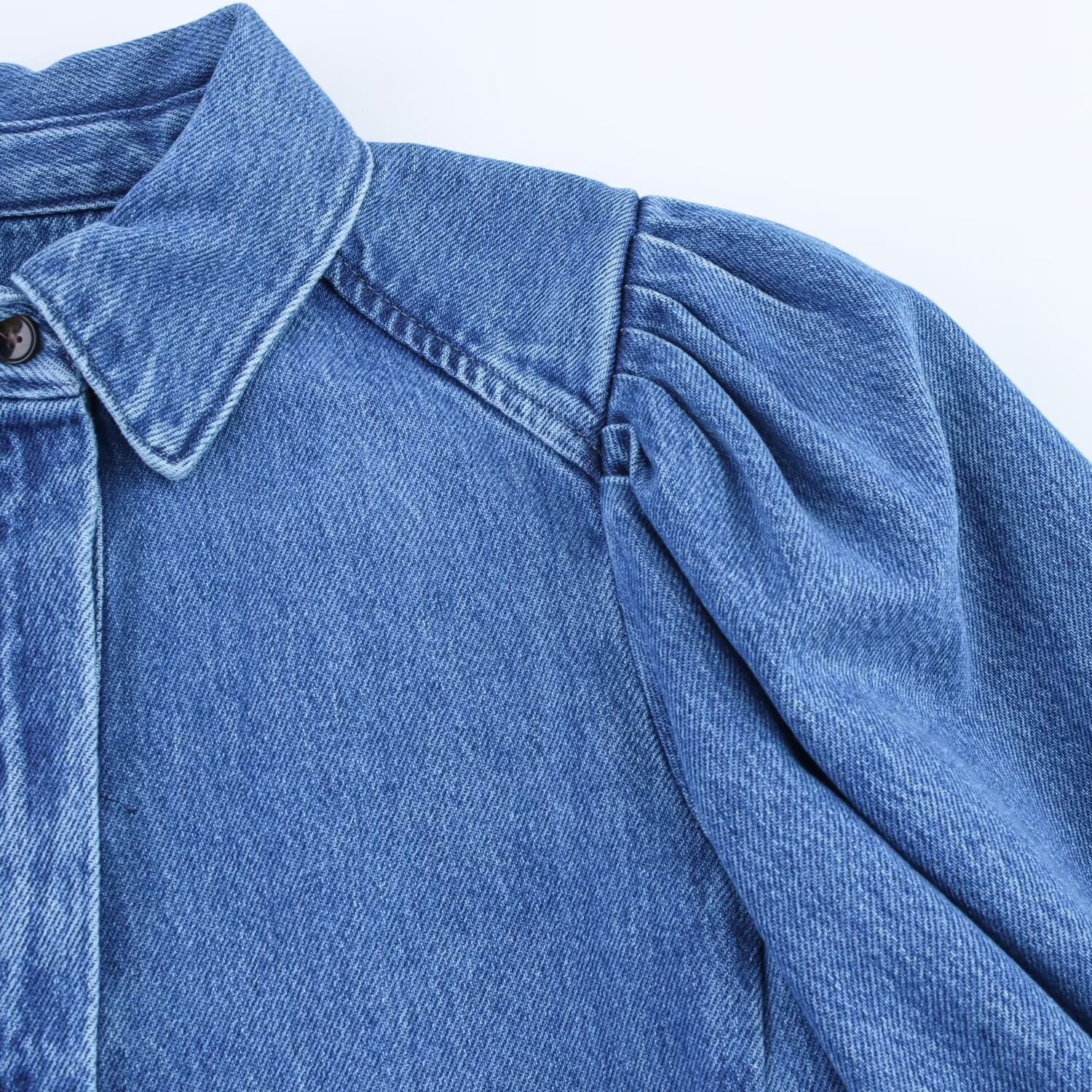 Трансграничная европейская и американская мода AliExpress, популярная универсальная джинсовая рубашка с воротником-поло и пышными рукавами + комплект брюк