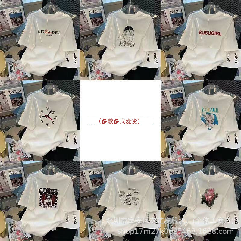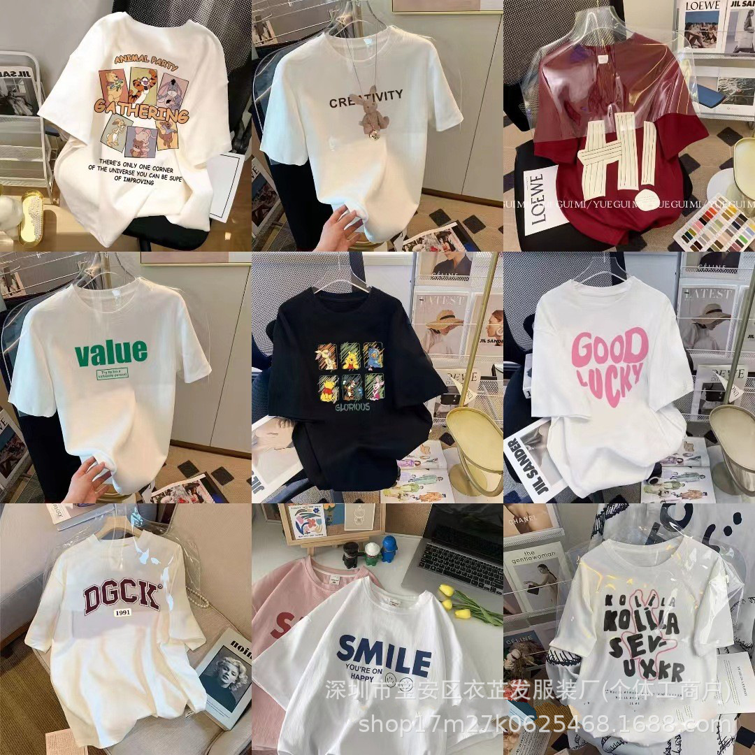 Дропшиппинг женских футболок с короткими рукавами, оригинальные поставки для внешней торговли, оптовая продажа одежды напрямую с фабрики за 2 юаня, поставки для уличных ларьков.