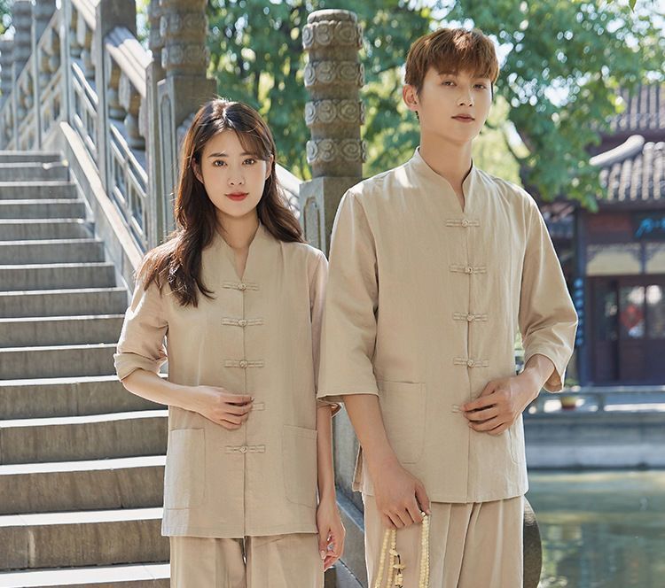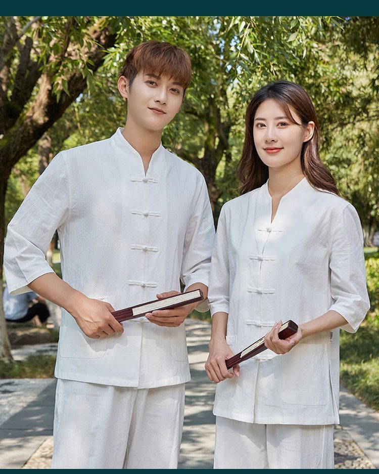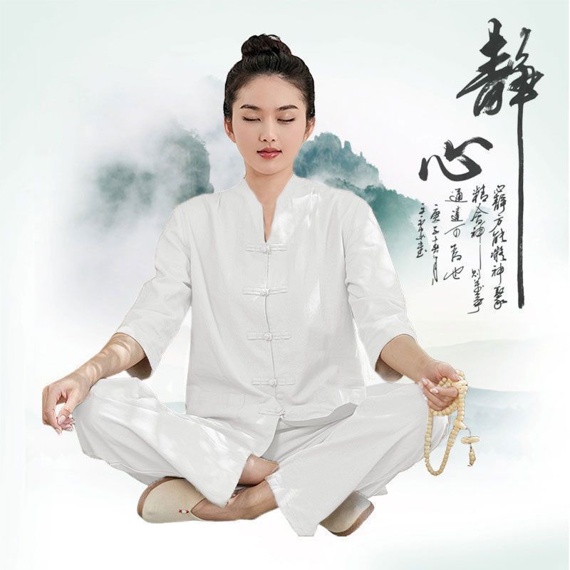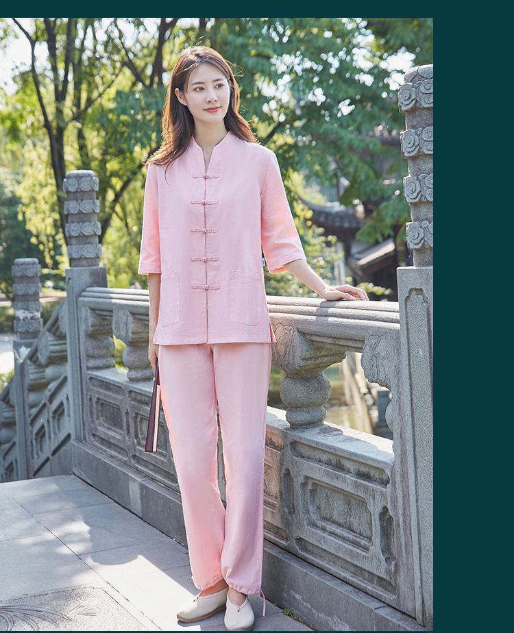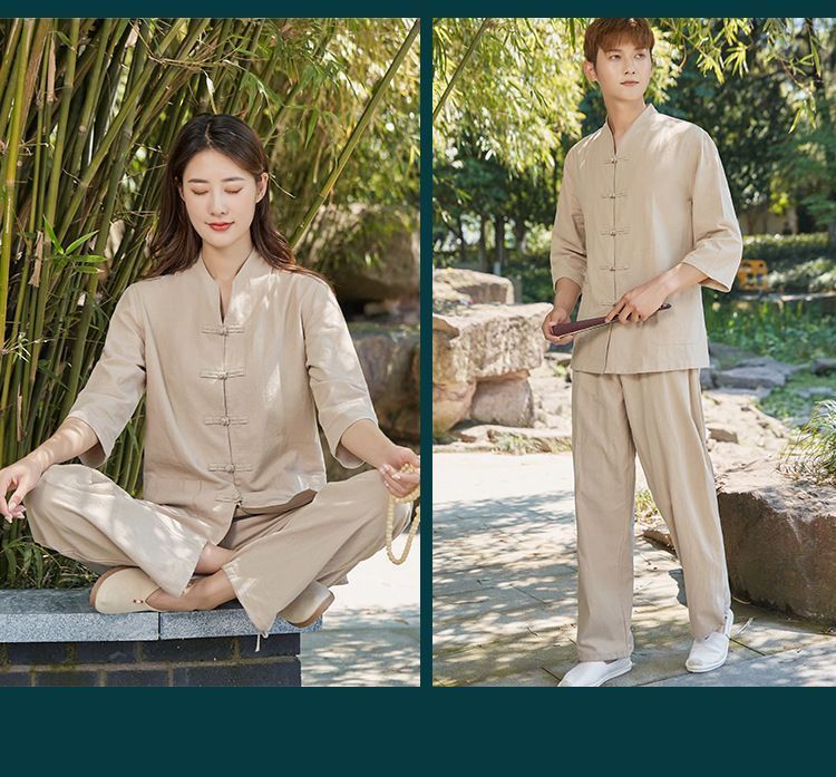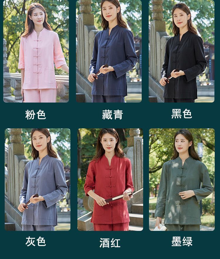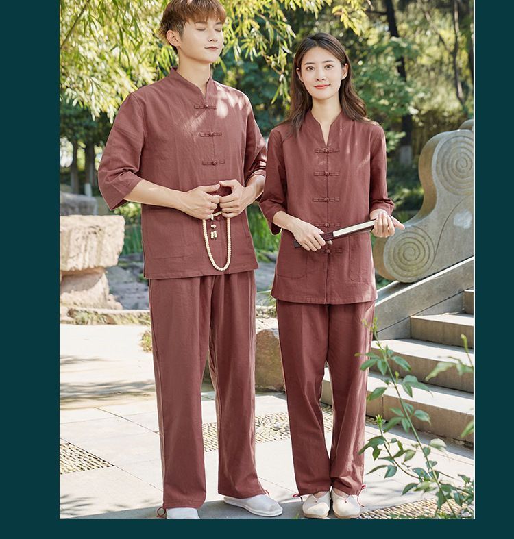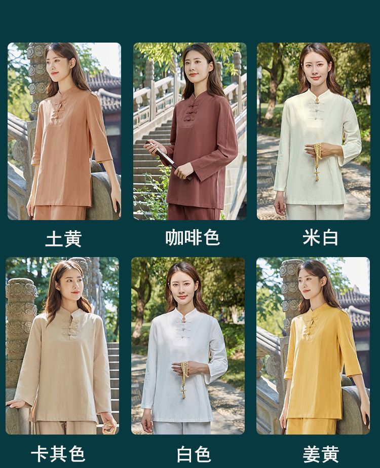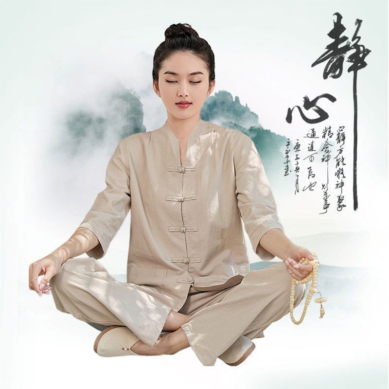 Одежда для мирян для медитации дзен, женский летний костюм из хлопка и льна с рукавами три четверти, женская одежда в буддийском стиле дзен, китайская верхняя одежда для практики дзен