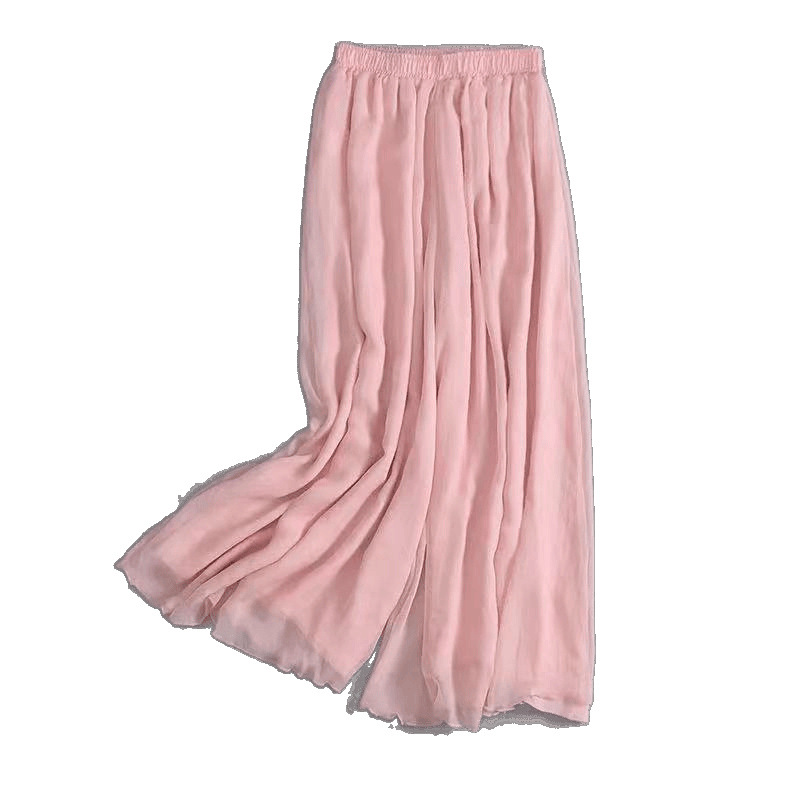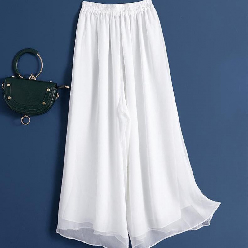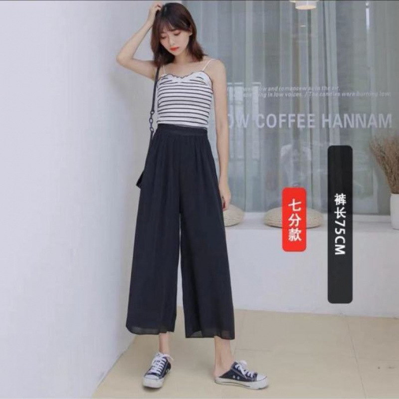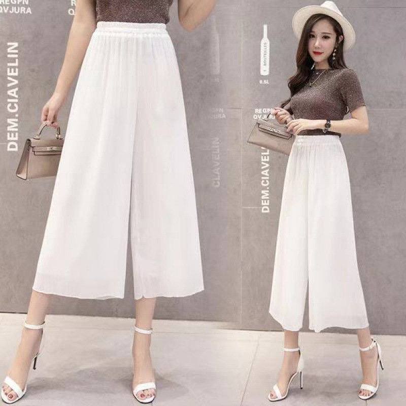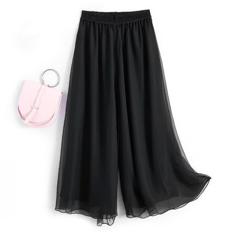 Двухслойные широкие брюки, черные шифоновые свободные брюки с высокой талией, свободные повседневные длинные брюки, укороченные брюки для женщин