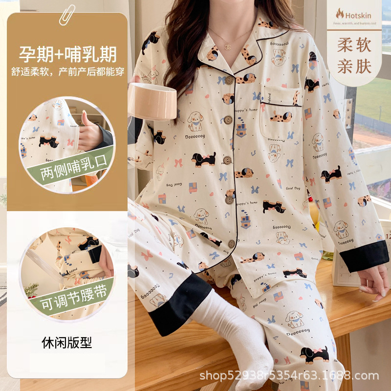 Пижамы для беременных, летние с длинными рукавами, тонкие послеродовые пижамы из чистого хлопка для кормления, комплект для беременных и кормящих мам