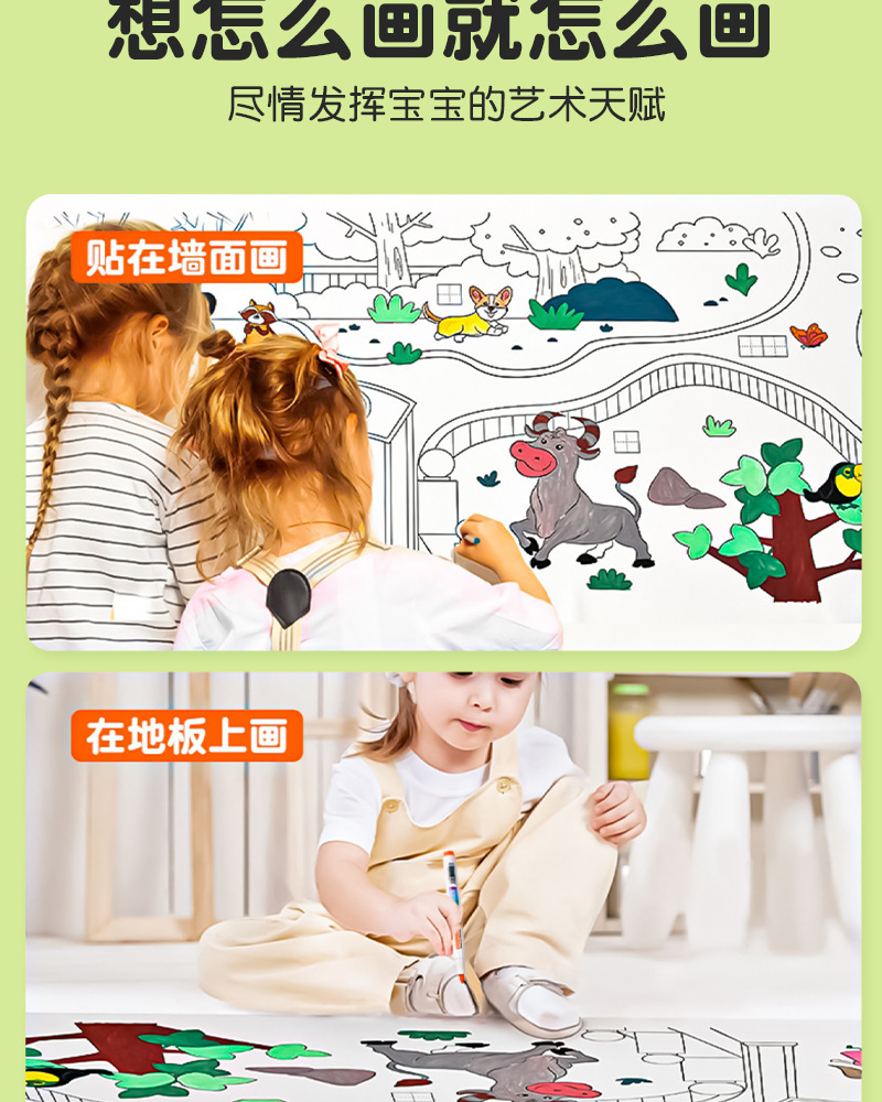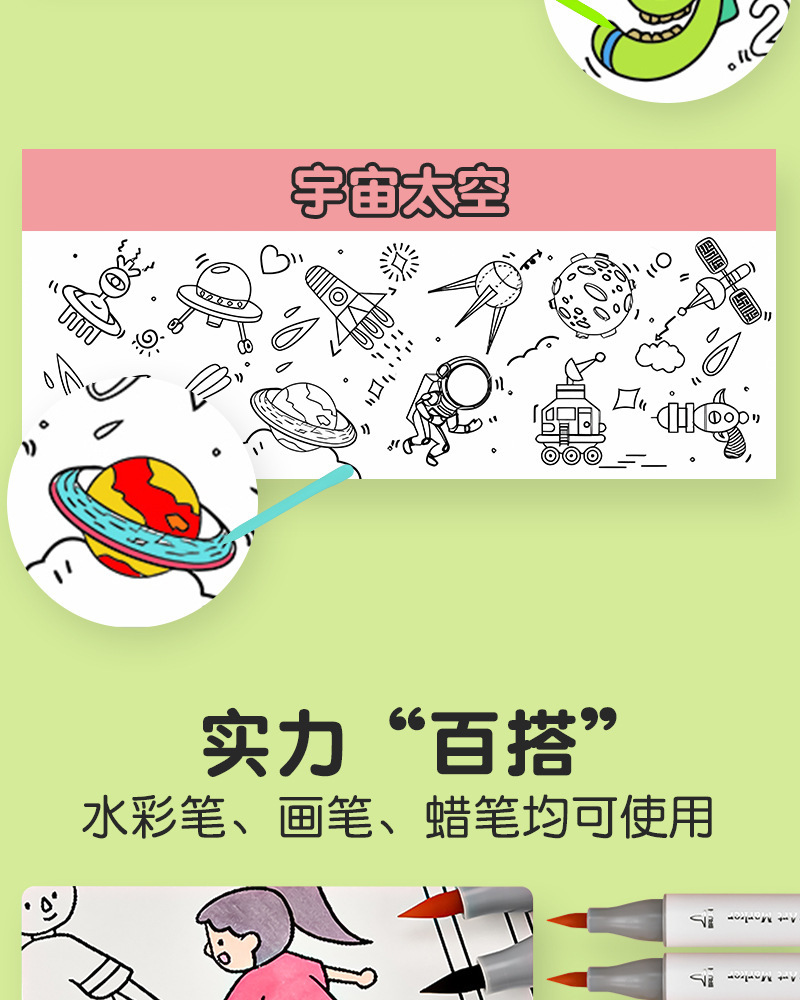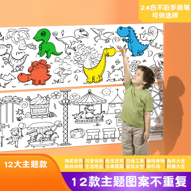 Детский свиток с граффити, раскраска, бумага для рисования, длинный свиток, детский сад, детский раскрасочный холст, не загрязняет стену и можно прикрепить к стене