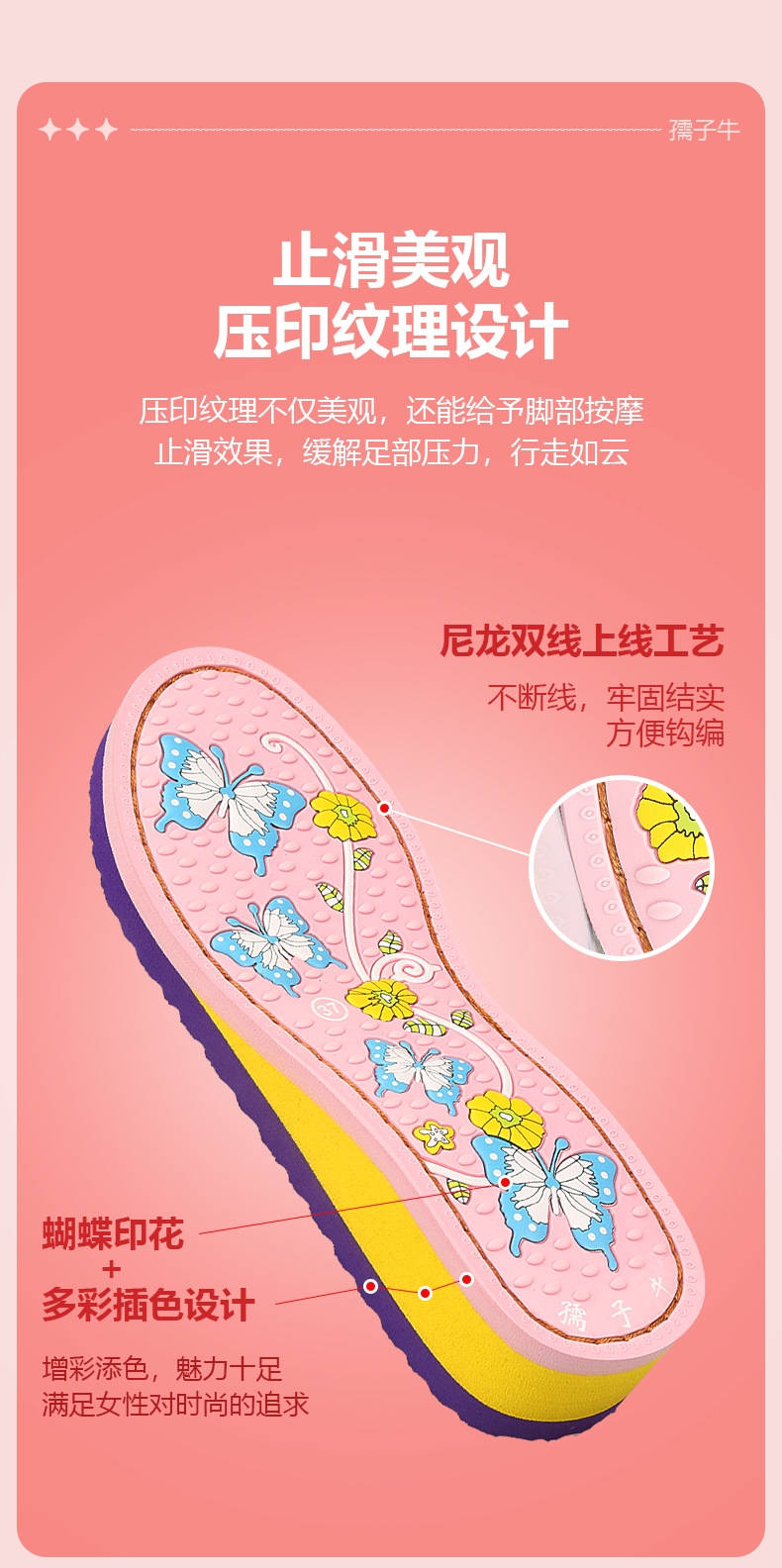 Новый противоскользящий, износостойкий и удобный полуфабрикат Ruziniu, связанный вручную крючком, с дышащим прохладным дном в виде бабочки.