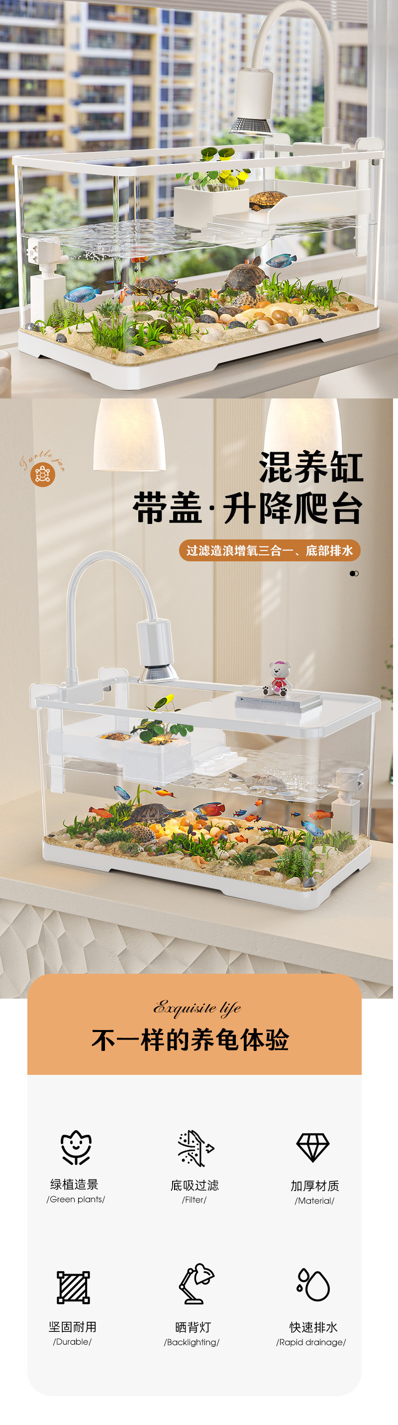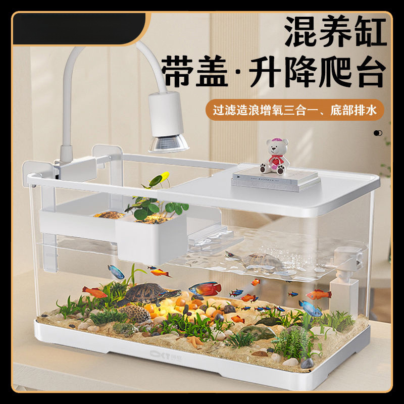 Экологический ландшафтный аквариум для черепах, регулируемая платформа для загара, небольшой бразильский аквариум для разведения черепах, бытовой пластиковый аквариум для смешанных рыб и черепах