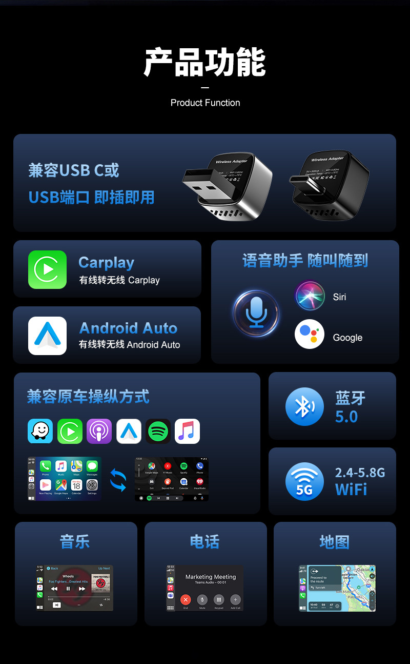 Трансграничная беспроводная карplay коробка Apple Android Smart Автомобильный Connected Box Автомобильный адаптор Carplay