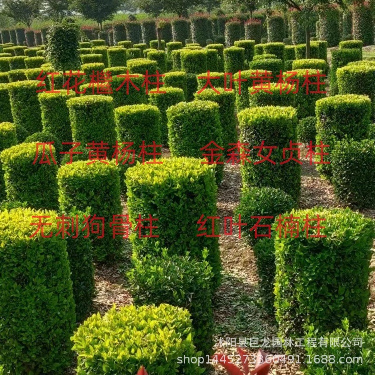 Колонна из красного цветочного самшита, колонна из крупнолистового самшита, колонна из золотой гардении, колонна из без шипов собачьей кости, колонна из красного листового камня