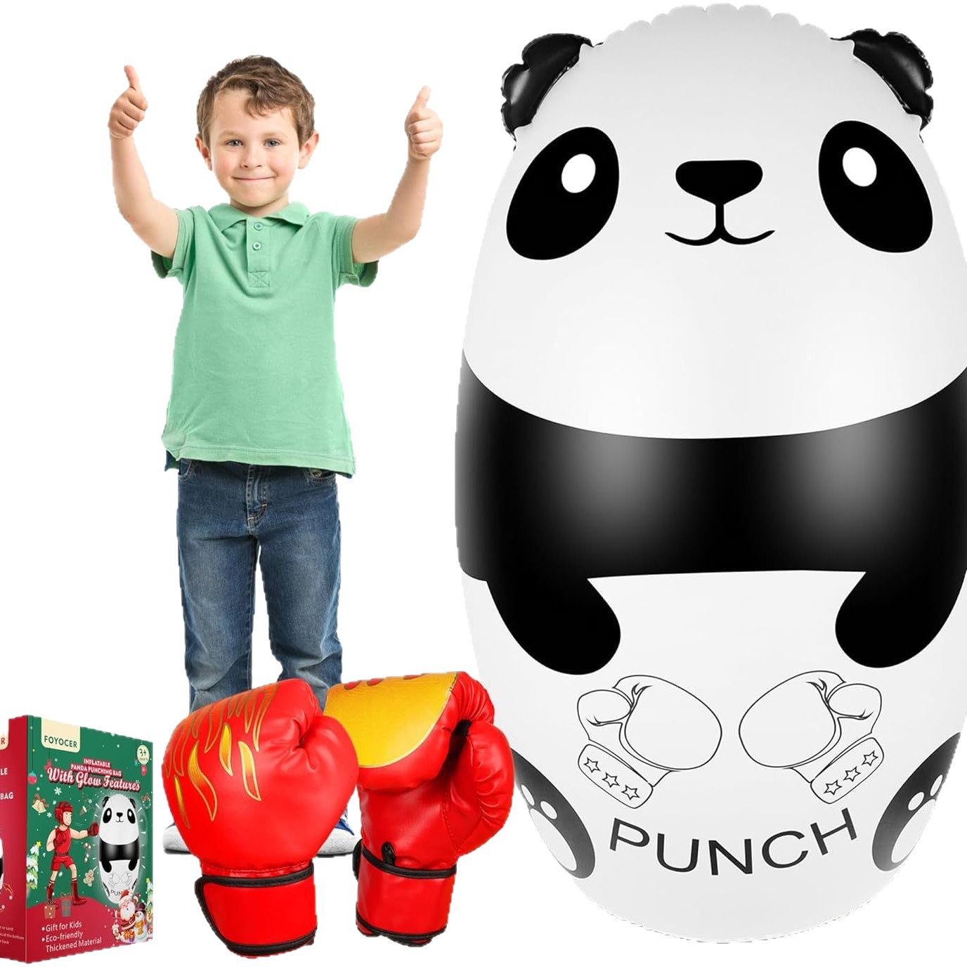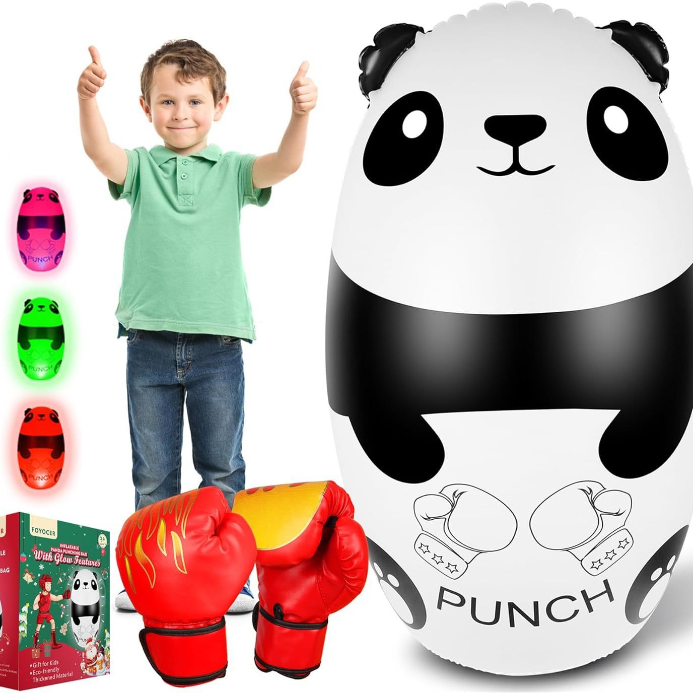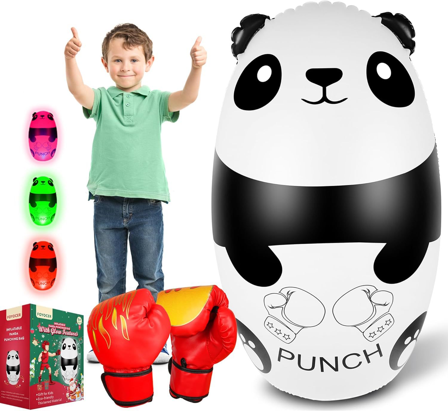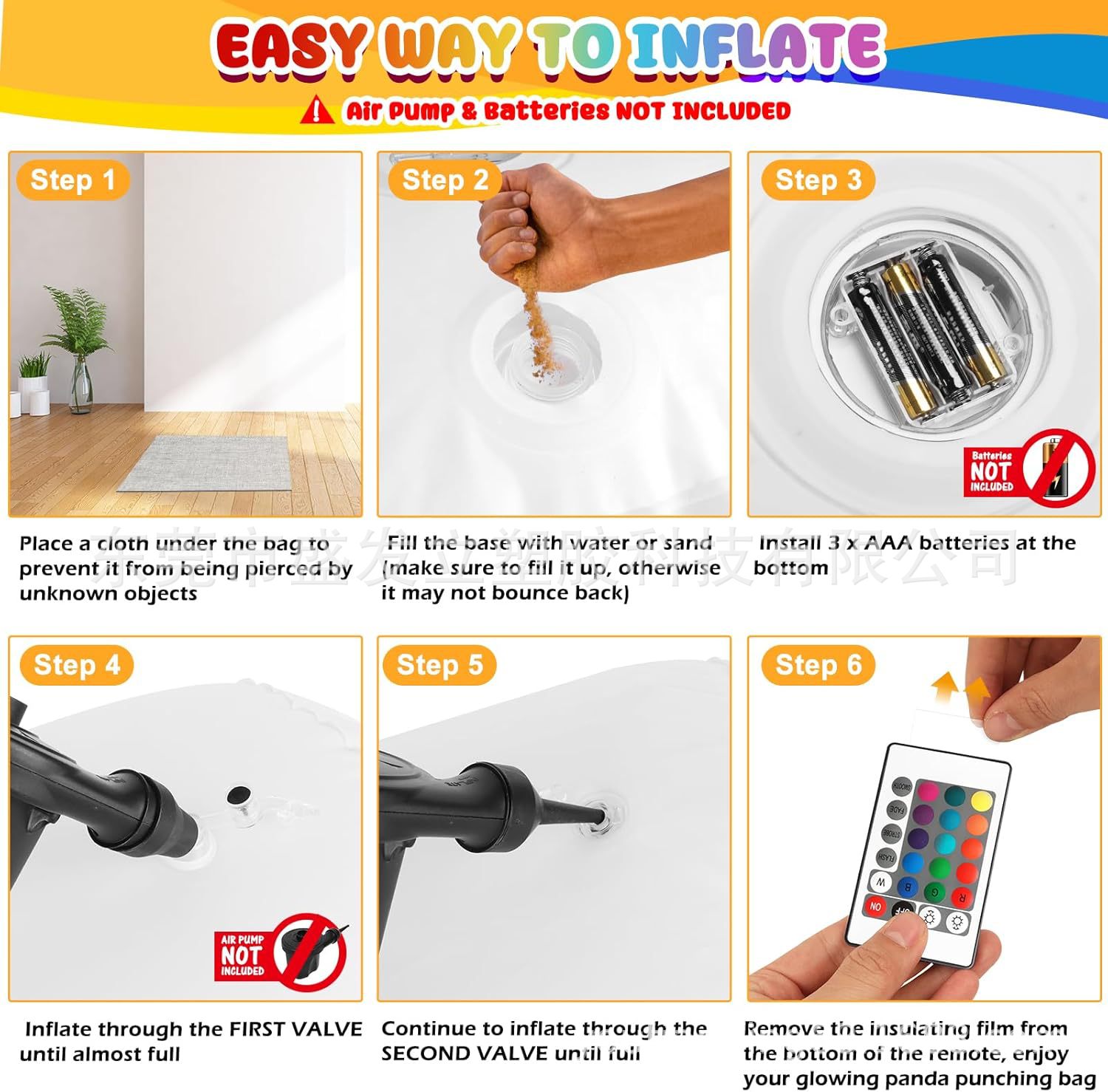 Надувной стакан с пандой, детская боксерская сумка, светодиодная панда, детская надувная игрушка для снятия стресса, подходит для детей в возрасте от 3 до 9 лет.