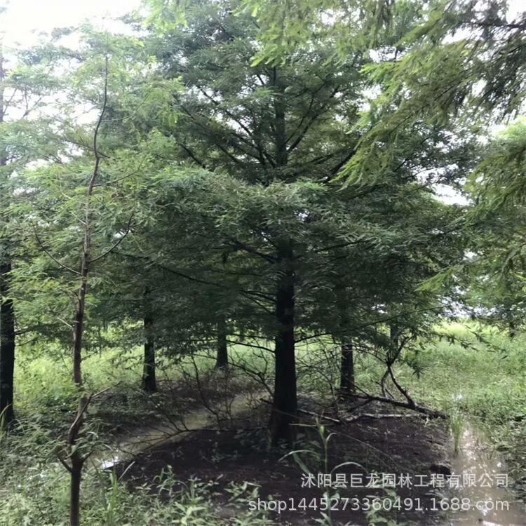 乔木,高达35米,胸径达2.5米;树干基部常膨大;树皮灰色、灰褐色或暗灰色,幼树裂成薄片脱落,大树裂成长条状脱落,内皮淡紫褐色;枝斜展,小枝下垂,幼树树冠尖塔形,老树树冠广圆形,枝叶稀疏;一年生枝光滑无毛,幼时绿色,后渐变成淡褐色,二、三年生枝淡褐灰色或褐灰色;侧生小枝排成羽状,长4-15厘米,冬季凋落;主枝上的冬芽卵圆形或椭圆形,顶端钝,长约4毫米,径3毫米,芽鳞宽卵形,先端圆或钝,长宽几相等,约2-2.5毫米,边缘薄而色浅,背面有纵脊。叶条形,长0.8-3.5(常1.3-2)厘米,宽1-2.5(常1.5-2)毫米,上面淡绿色,下面色较淡,沿中脉有两条较边带稍宽的淡黄色气孔带,每带有4-8条气孔线,叶在侧生小枝上列成二列,羽状,冬季与枝一同脱落。球果下垂,近四棱状球形或矩圆状球形,成熟前绿色,熟时深褐色,长1.8-2.5厘米,径1.6-2.5厘米,梗长2-4厘米,其上有交对生的条形叶; 种鳞木质,盾形,通常11-12对,交叉对生,鳞顶扁菱形,中央有一条横槽,基部楔形,高7-9毫米,能育种鳞有5-9粒种子;种子扁平,倒卵形,间或圆形或矩圆形,周围有翅,先端有凹缺,长约5毫米,径4毫米;子叶2枚,条形,长1.1-1.3厘米,宽1.5-2毫米,两面中脉微隆起,上面有气孔线,下面无气孔线;初生叶条形,交叉对生,长1-1.8厘米,下面有气孔线。花期2月下旬,球果11月成熟。