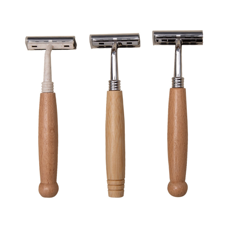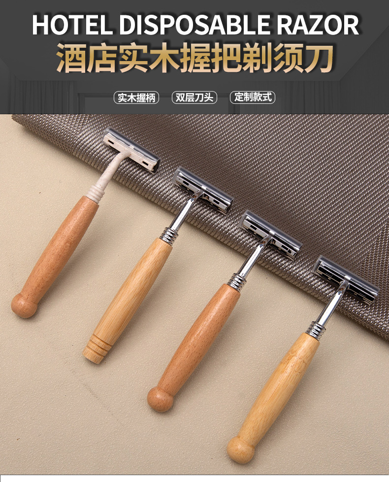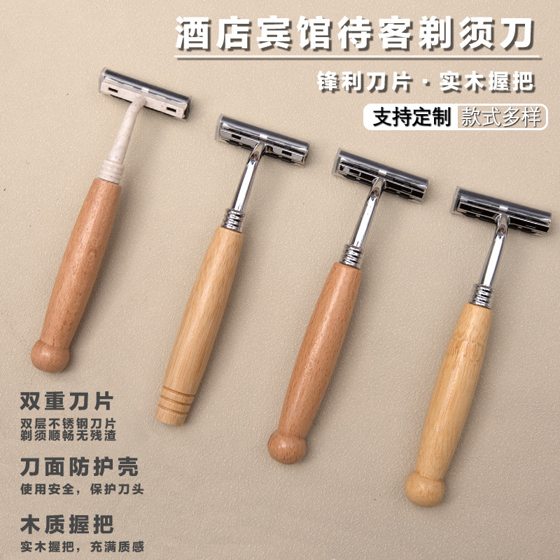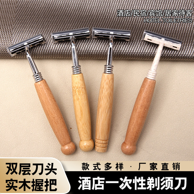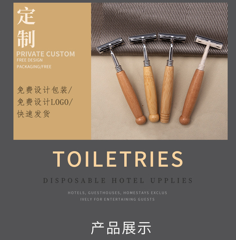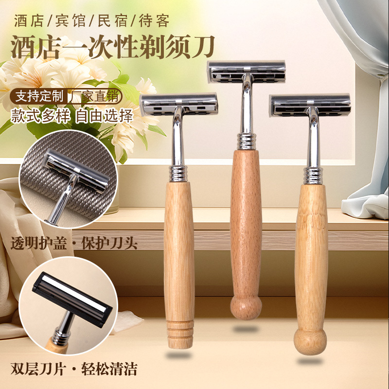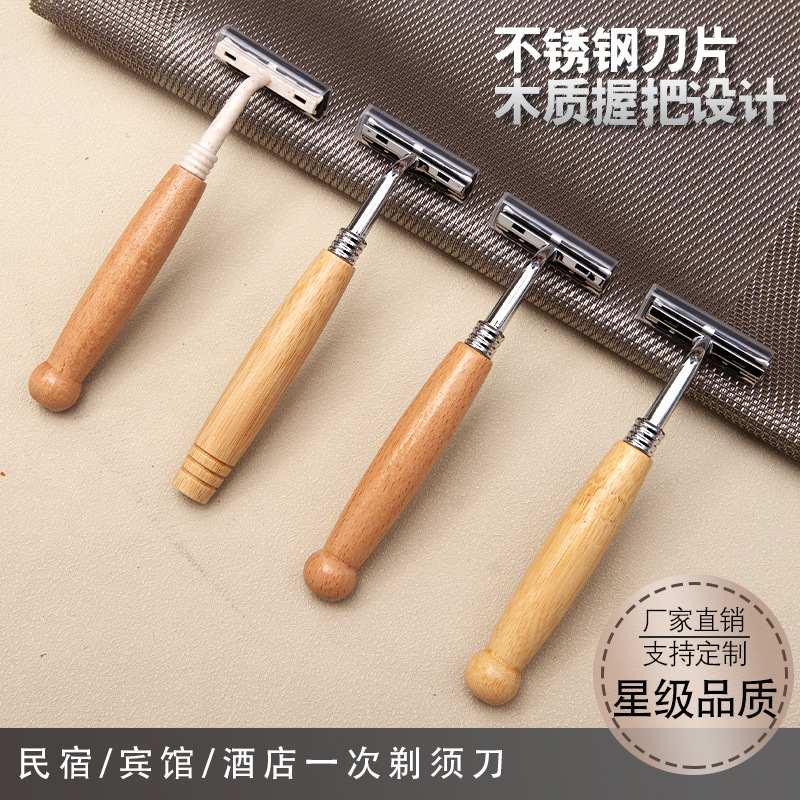 Одноразовые бритвы для гостиниц B&B, оптовая продажа, деревянная ручка, головка из нержавеющей стали, портативная, независимая упаковка