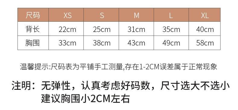 Рекомендуемый размер XS 1.0-1.5kg Размер груди 34 см, длина спины 20 см.; Рекомендуемый размер S 1.5-2.5kg Размер груди 39 см, длина спины 25 см.; Рекомендуемый размер М 3-4.5kg Размер груди 44 см, длина спины 30 см.; Рекомендуемый размер L 5-7kg Размер груди 50 см, длина спины 35 см.; Рекомендуемый размер XL 7.5-11kg Размер груди 59 см, длина спины 40 см.