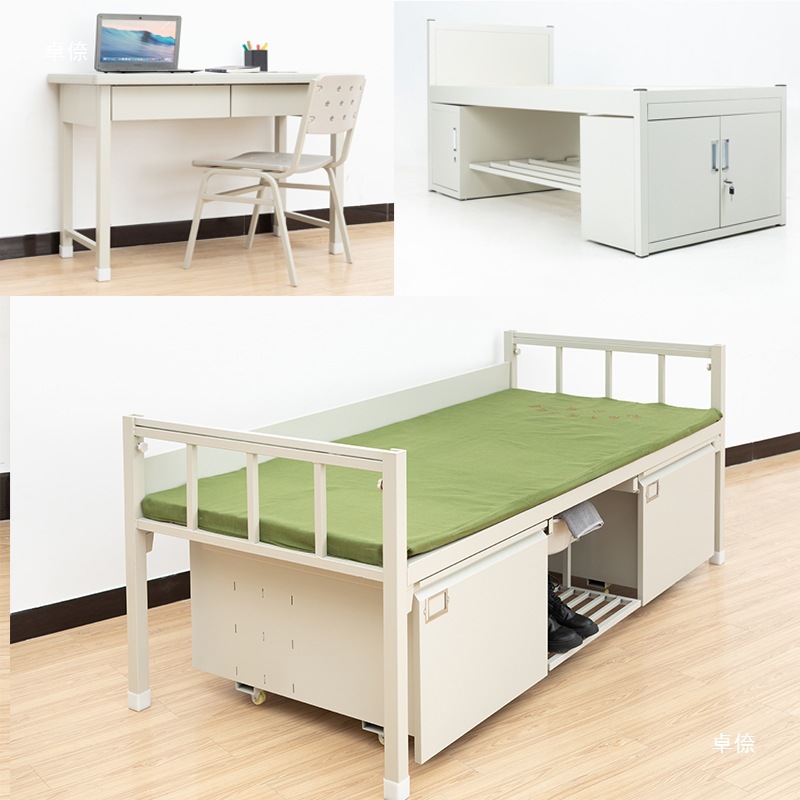 14 стандартных кроватей; 13 стандартных кроватей; 13 стандартных двухъярусных кроватей; Стандартная двухъярусная кровать; Огненная односпальная кровать; Внутренний шкаф типа А; Внутренний шкаф типа B; Внутренний шкаф для одного человека; Учебный стол с двумя выдвижными ящиками; Стол для занятий с тремя розыгрышами; учебный стул; раскладная кровать; складной стол; складной учебный стул; компьютерный учебный стол; 4-дверный внутренний шкаф; Комбинированная кровать; прикроватная тумбочка; матрас