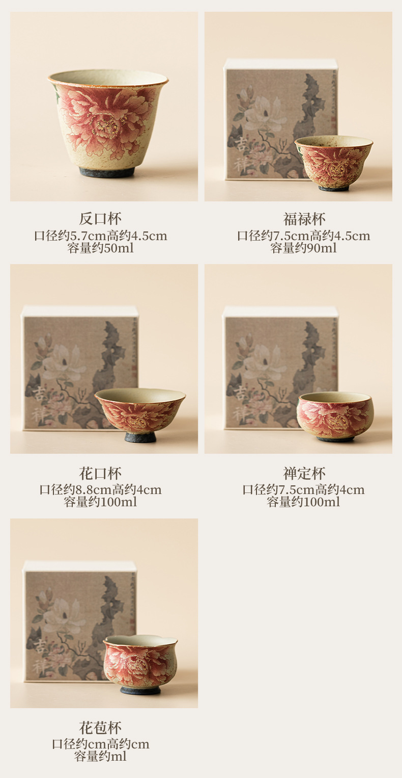 Кубок контратаки; Кубок Фулу (подарочная коробка); Цветочная чашка (подарочная коробка); Чашка для медитации дзен (подарочная коробка); Чашка с цветочным бутоном (подарочная коробка)