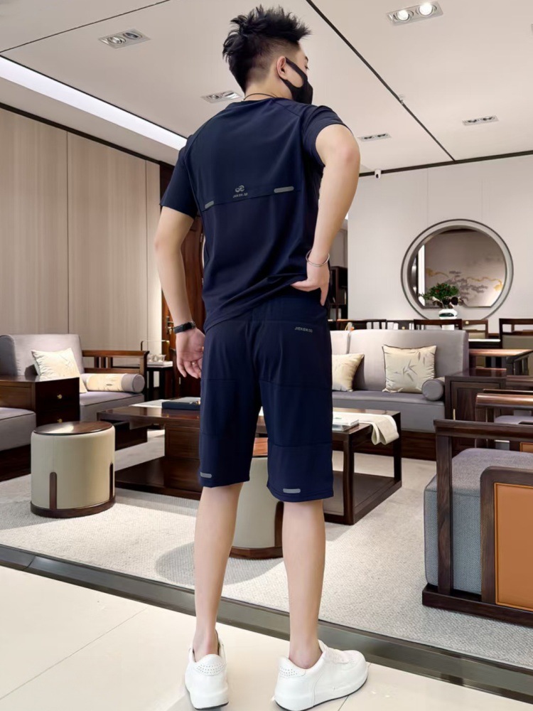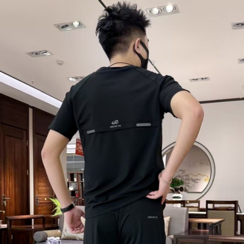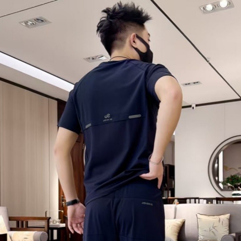 Новый летний сетчатый дышащий быстросохнущий повседневный спортивный костюм, мужская модная простая универсальная свободная футболка с короткими рукавами