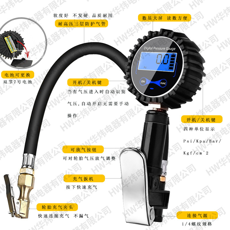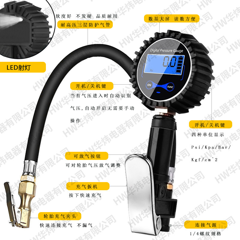 轮胎数显充气表 高精度轮胎充气表 数显轮胎充气枪 测压表 充气表