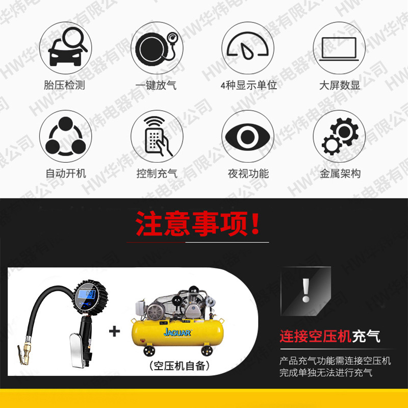 全新升级,采有铜加厚加强快速夹头,能快速连接和断开轮胎嘴,不漏气;测压,充气,放气三大功能,同时高精度LCD数字表显示,有四种单位可切换,寿命长。适用范围:摩托车Motorcycle轿车Car中小型客货车Truck & Bus