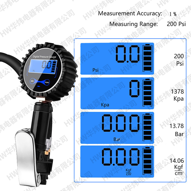 【压力单位】:四种单位可切换PSI, KPa, Bar , Kgf/cm^2