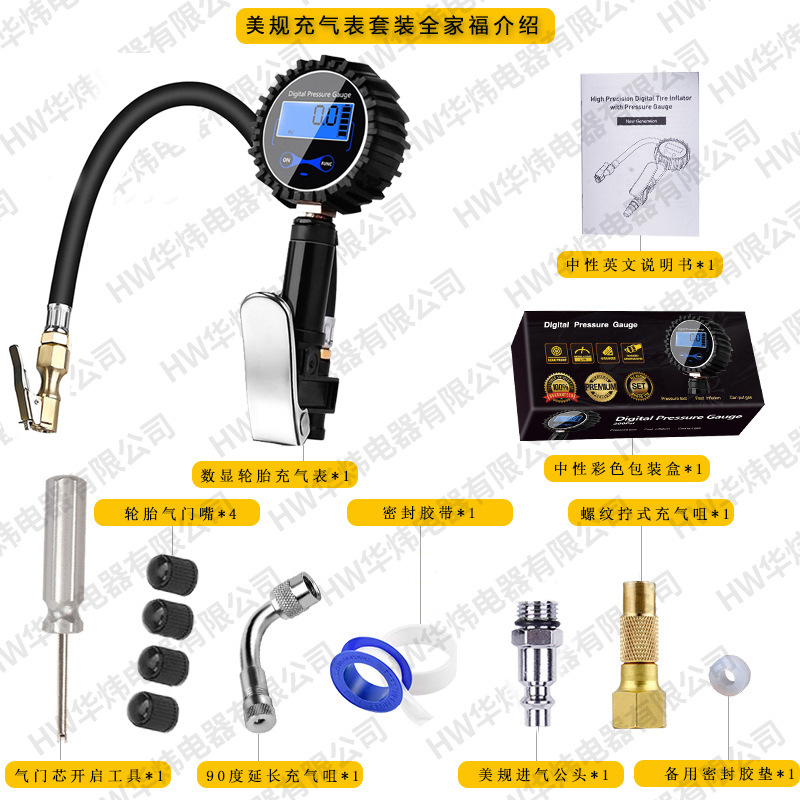 美规数显充气表套装(有带LED照明灯套装可选)