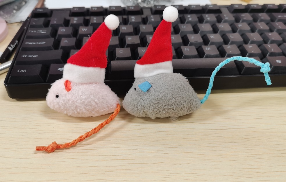 Мышка в рождественской шапке - синий хвост; Мышка в рождественской шапке - оранжевый хвост; Мышка в рождественской шапке - зеленый хвост; Мышка в рождественской шапке - хвост из джутовой веревки; Рождественская шапка-мышка – розовая