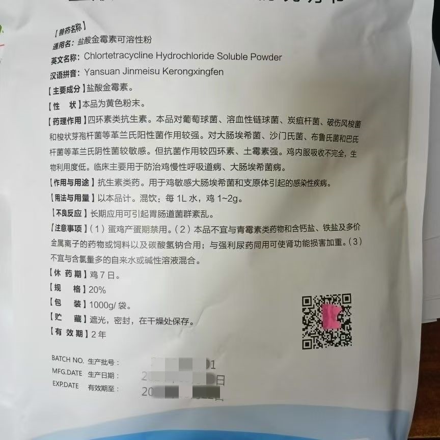 Zhengda Biopharmaceutical Veterinary 20% растворимый порошок хлортетраксациллина гидрохлорида можно смешивать с материалами и растворять в воде, дыхательный микоплазмоз