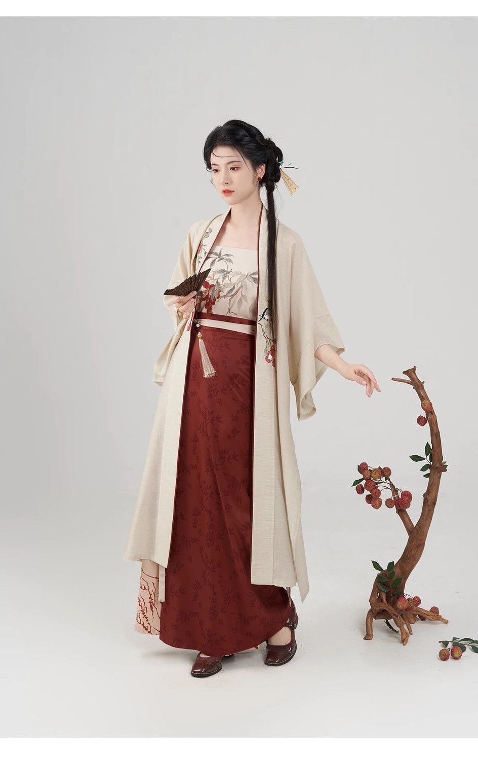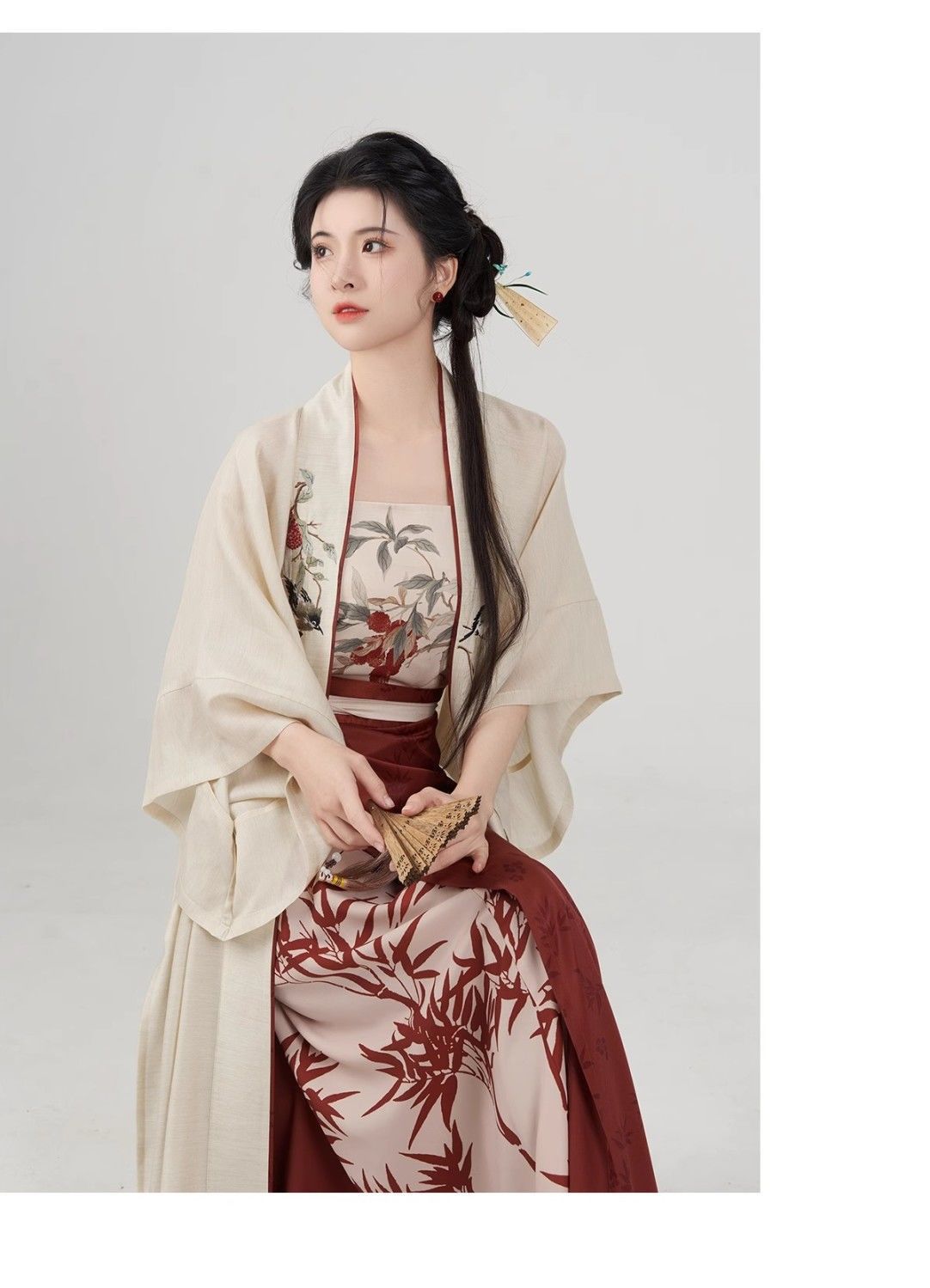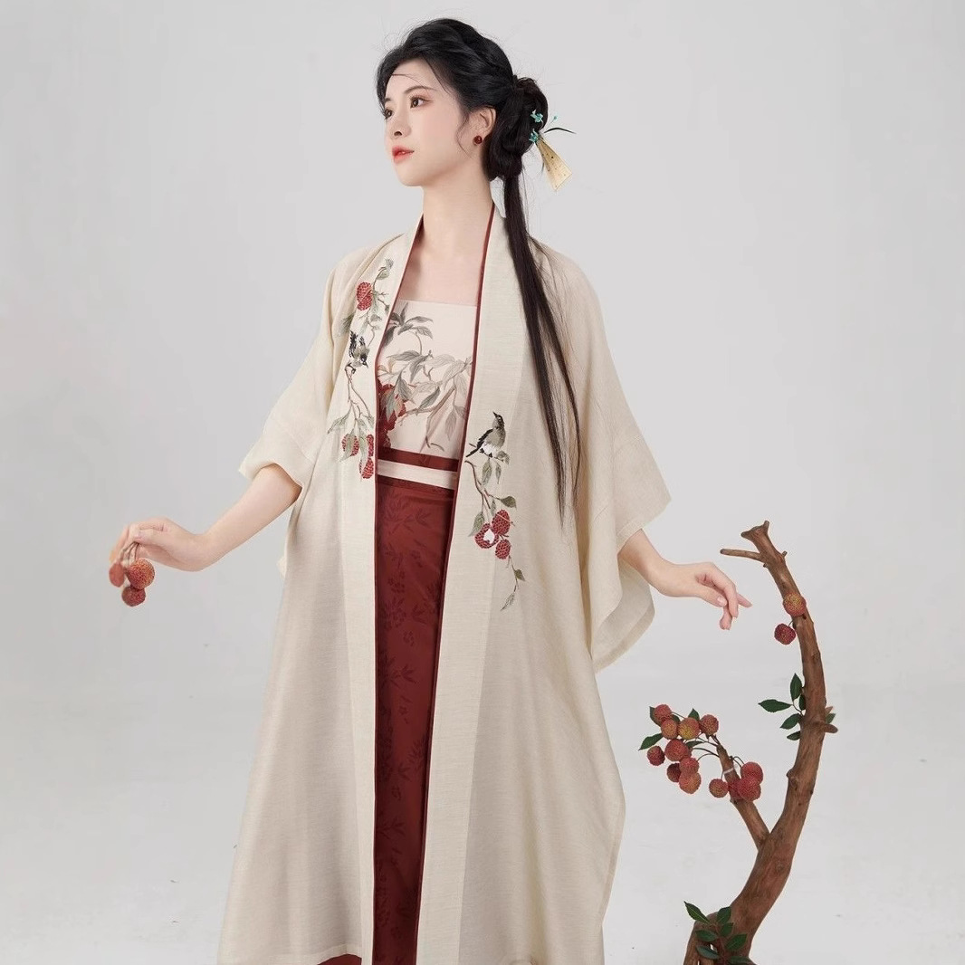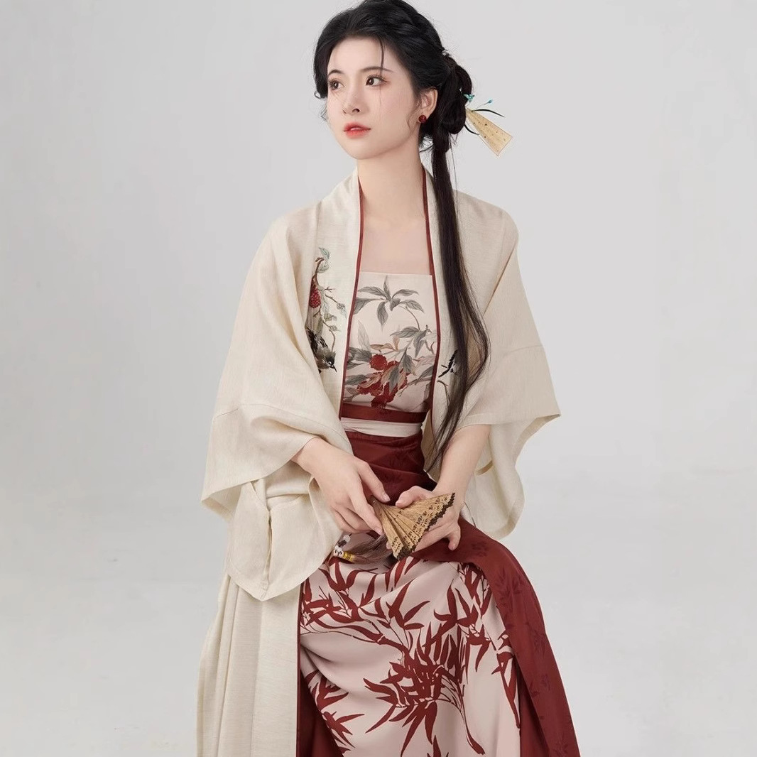 Новый женский комплект из трех предметов династии Хань с длинной сухой храмовой вышивкой и вращающейся юбкой, летняя и осенняя вышивка в китайском стиле.