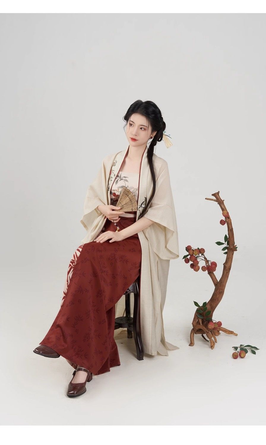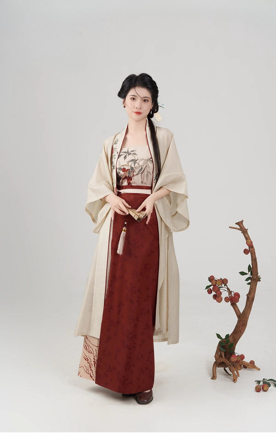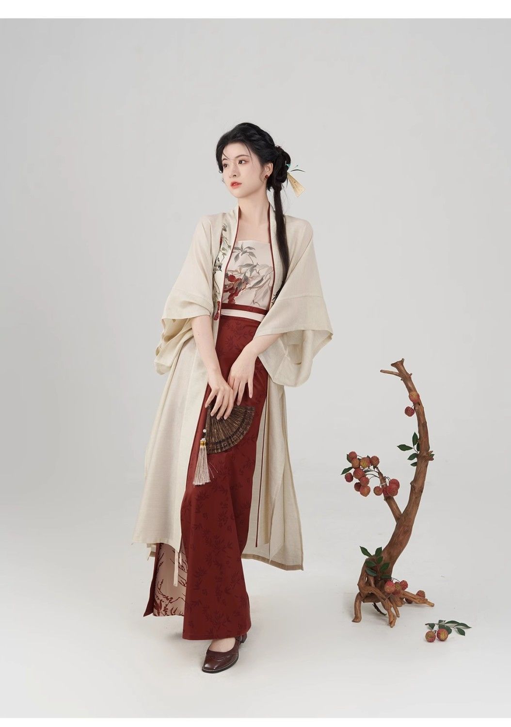Новый женский комплект из трех предметов династии Хань с длинной сухой храмовой вышивкой и вращающейся юбкой, летняя и осенняя вышивка в китайском стиле.