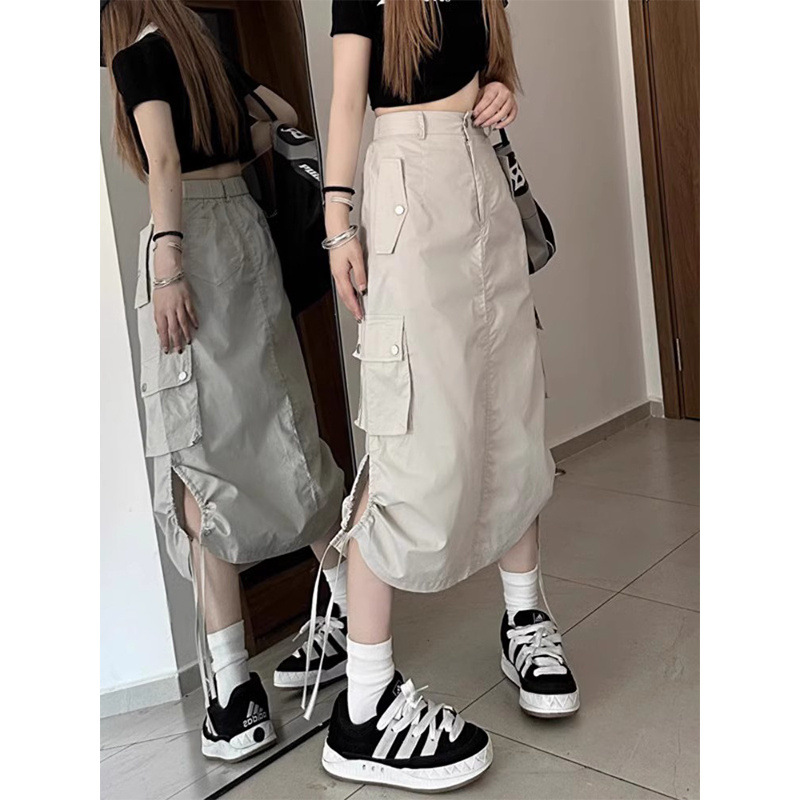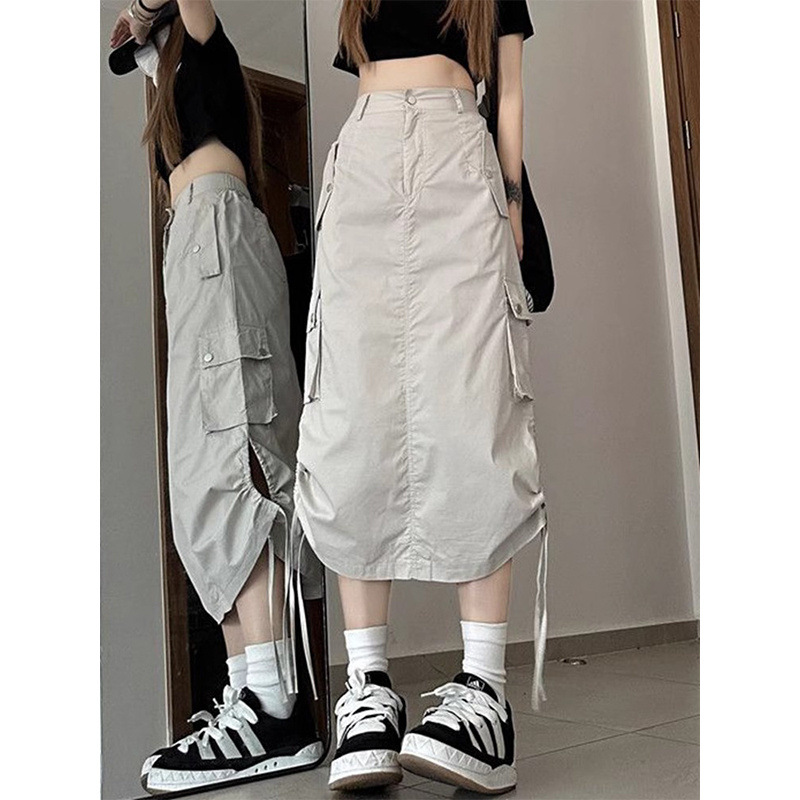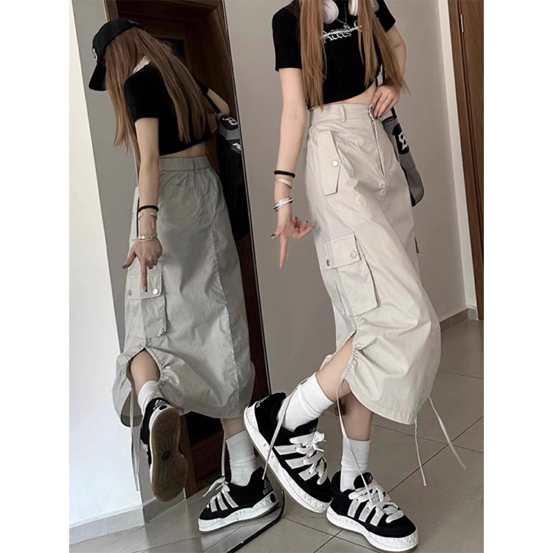 Американский ретро Юбка Юбка Юбка Женское Лето 2025 Новый Горячая Девушка Шпагат Прямая Повседневная Открывка Средние длинные юбки