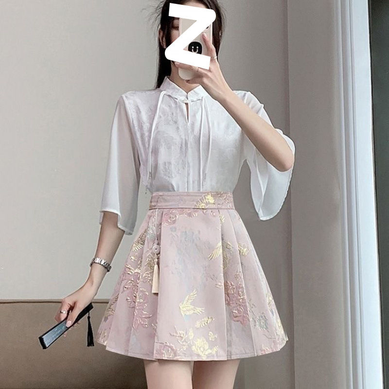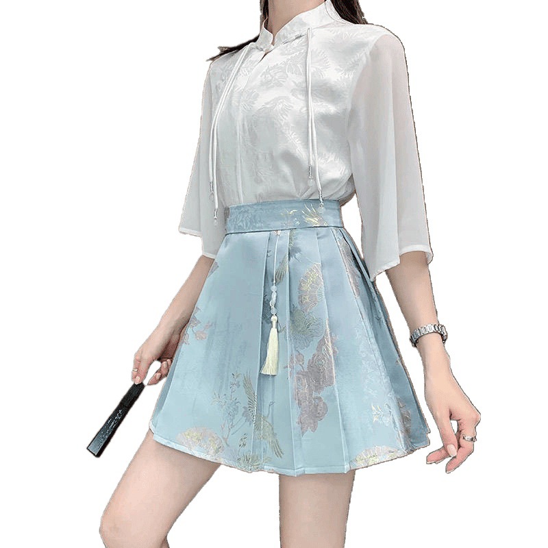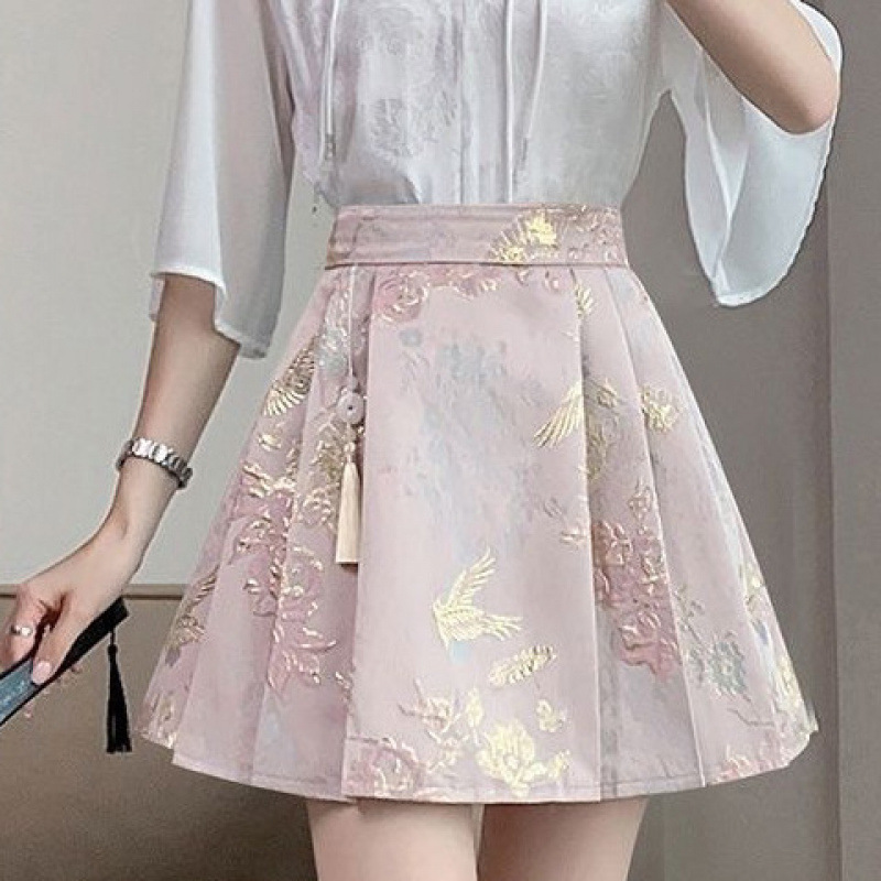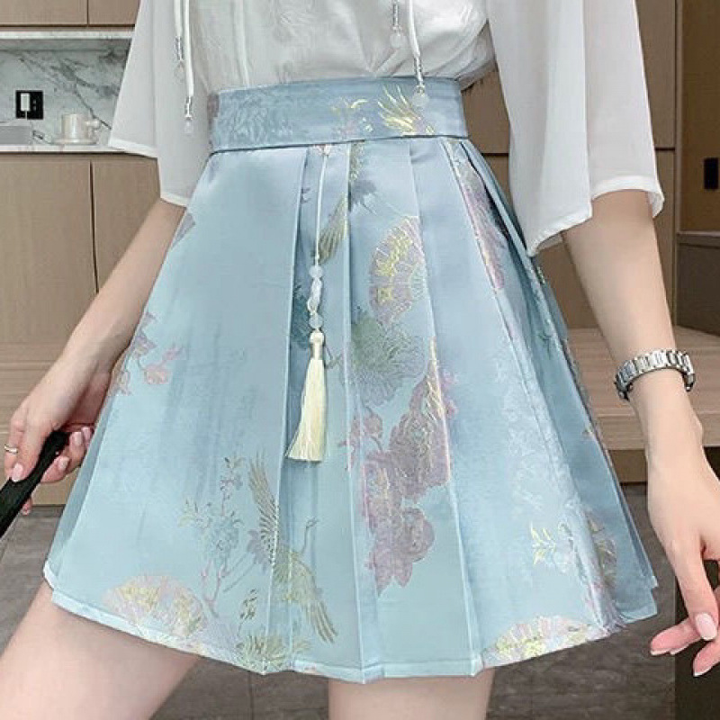 Новая атласная жаккардовая юбка Mamian 2025, новая юбка в стиле шинуазри в древнем стиле, женский плиссированный костюм трапециевидной формы с высокой талией