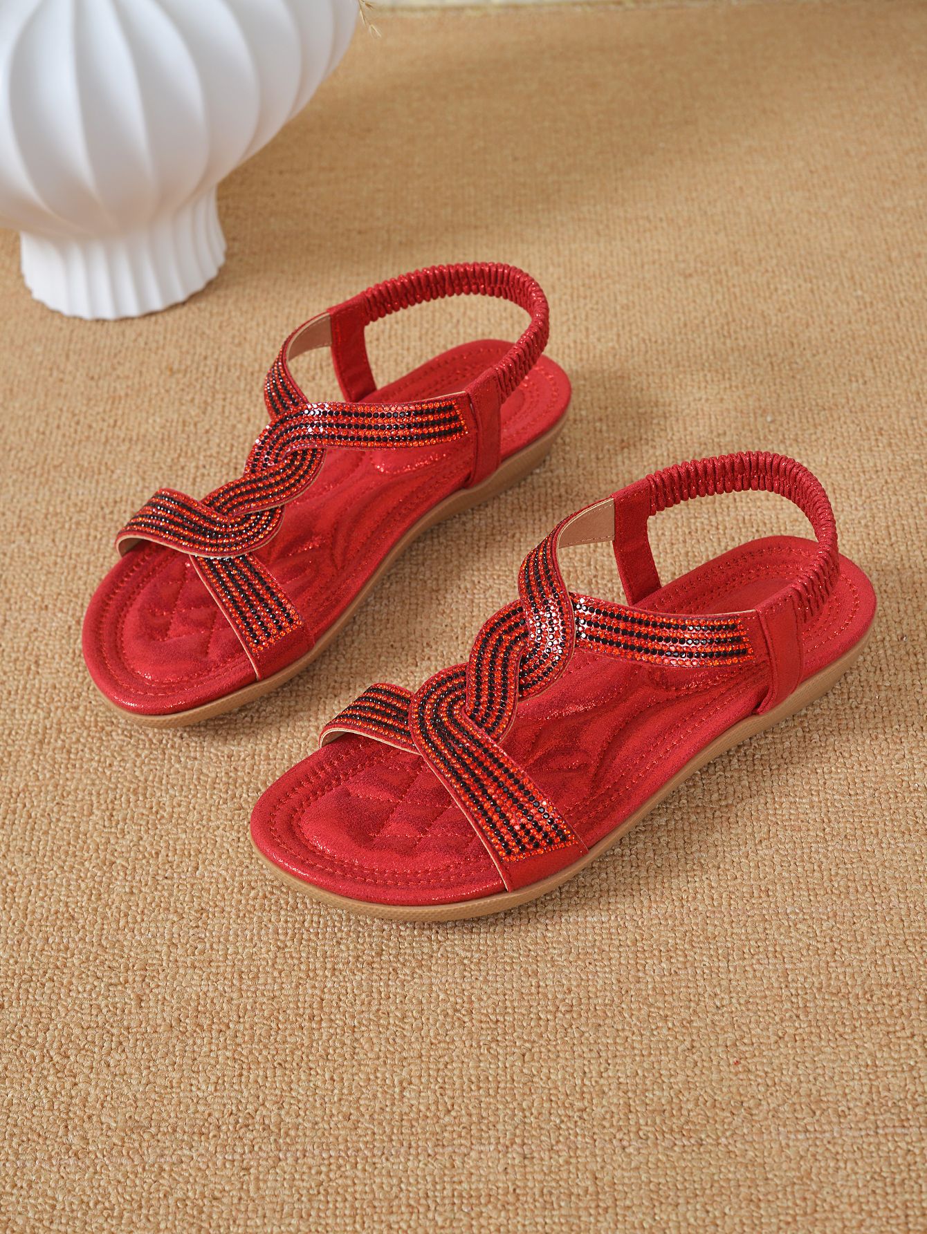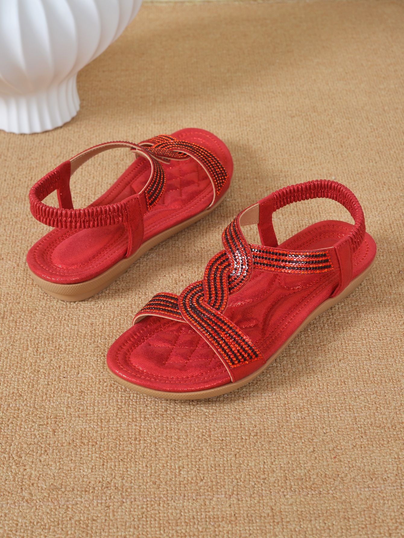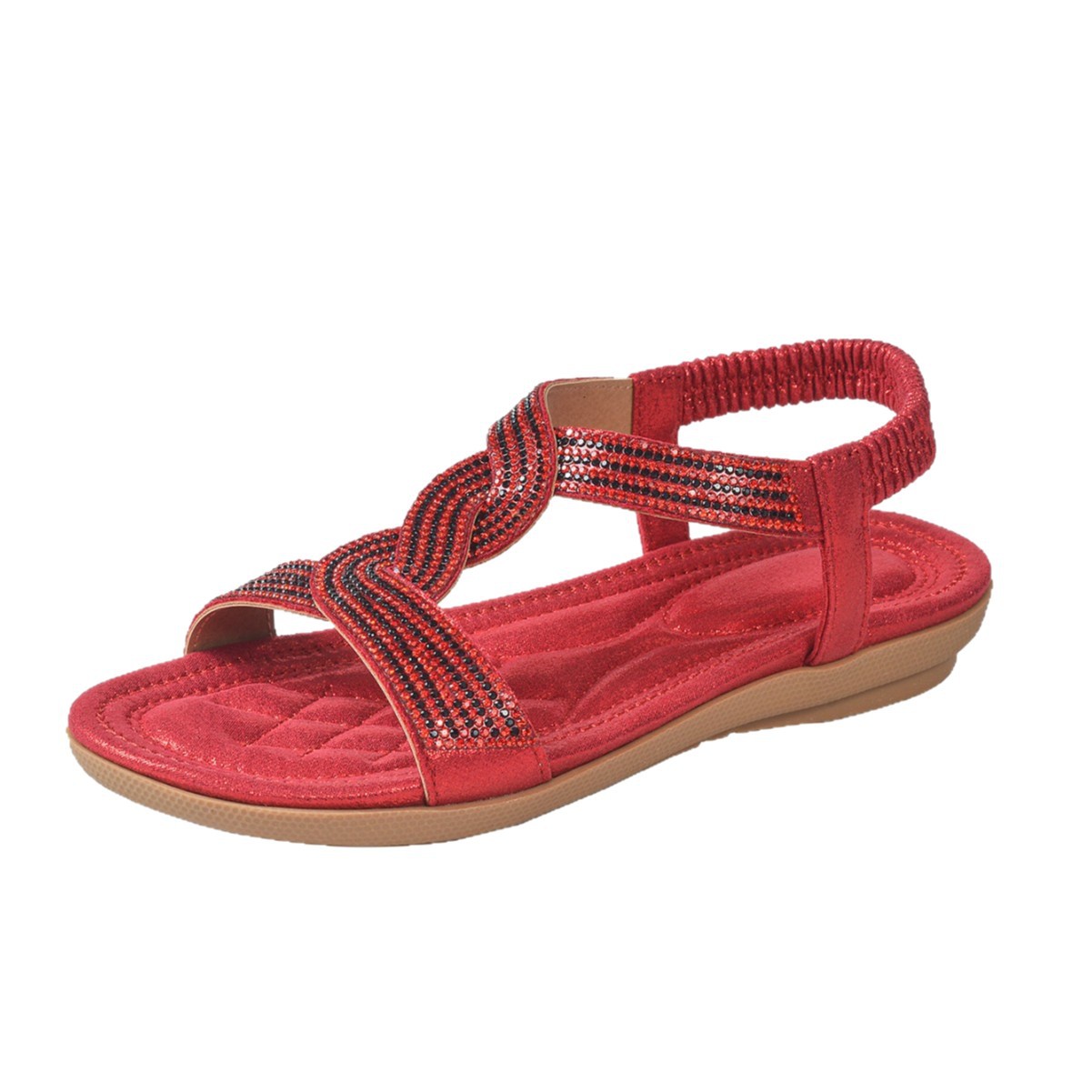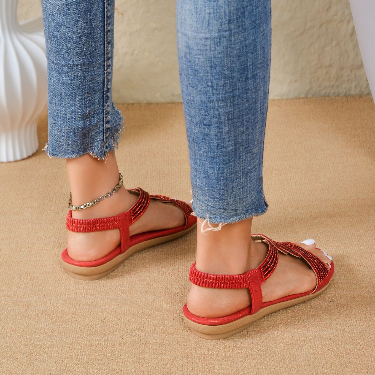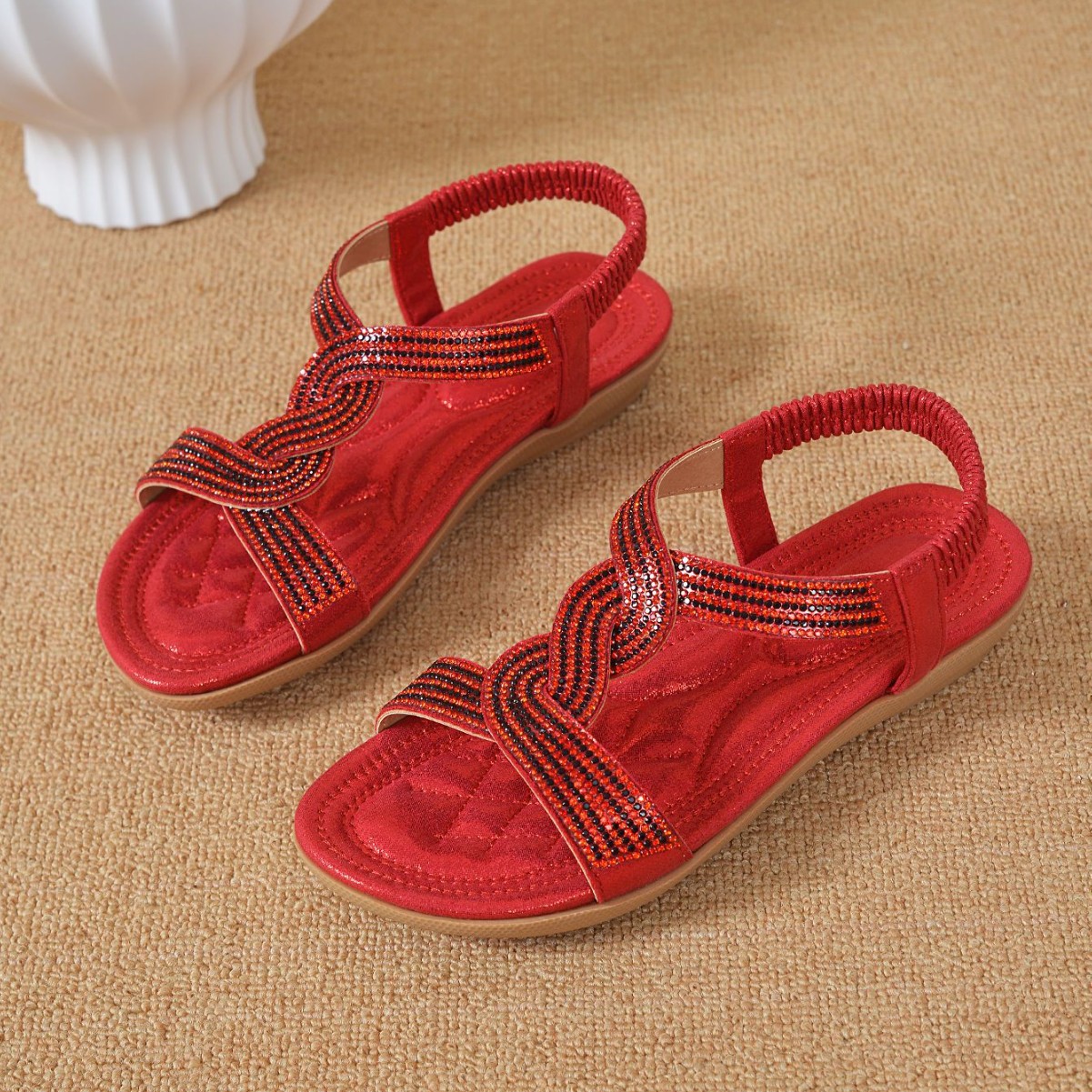 Большие красные сандалии в этническом стиле весна 2025 года. Мягкая пляжная обувь. Бохо-стиль, новый кросс-бордерный дизайн, плетение бонд.