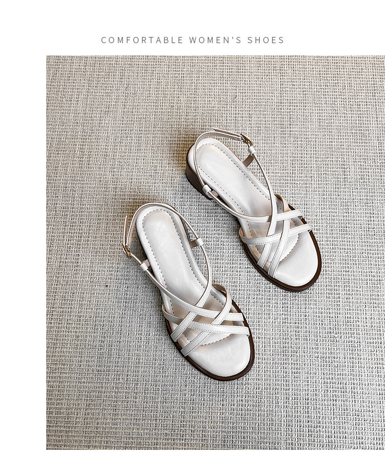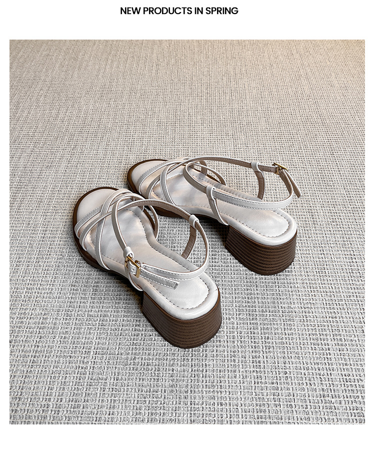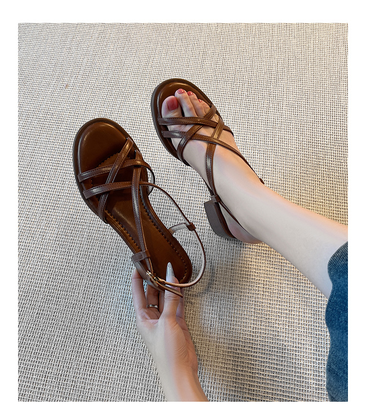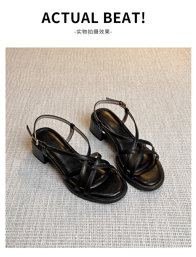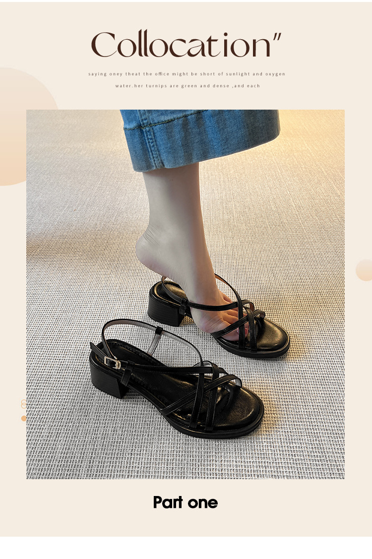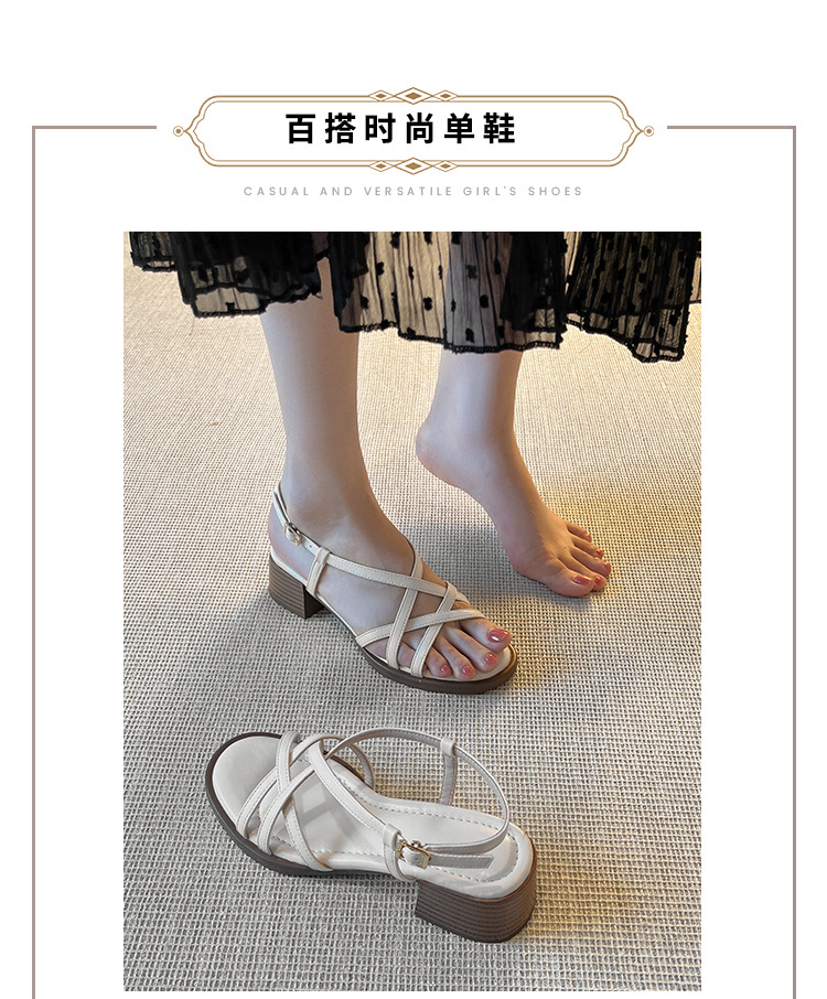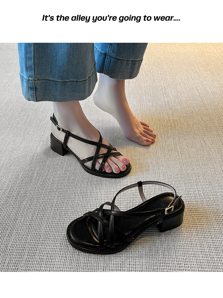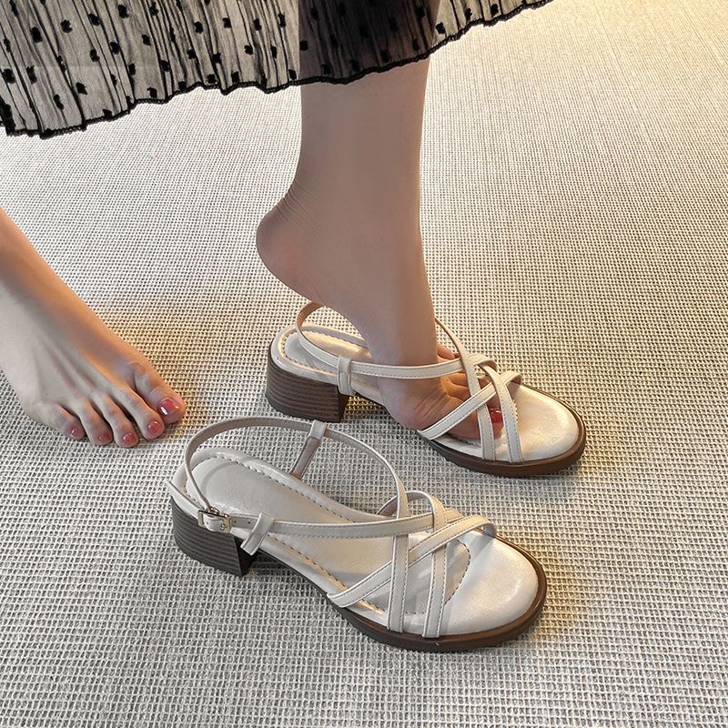 В наличии~~Женские летние новые стильные ретро-тапочки на среднем каблуке с перекрестными ремешками на толстом каблуке и тонкими ремешками.