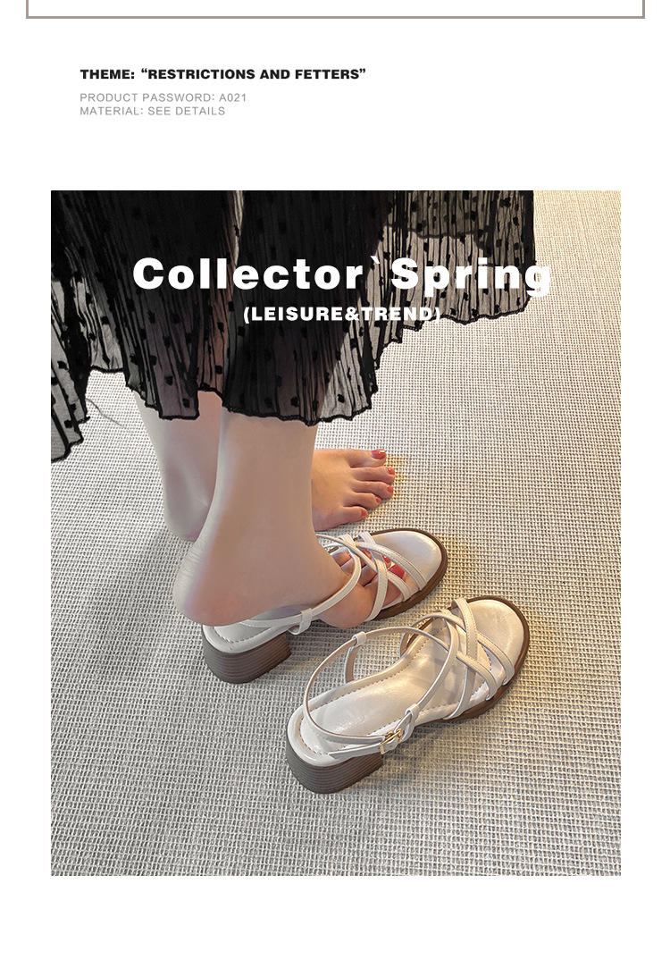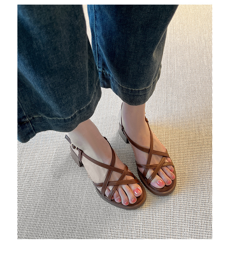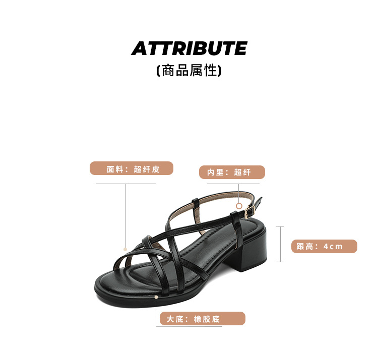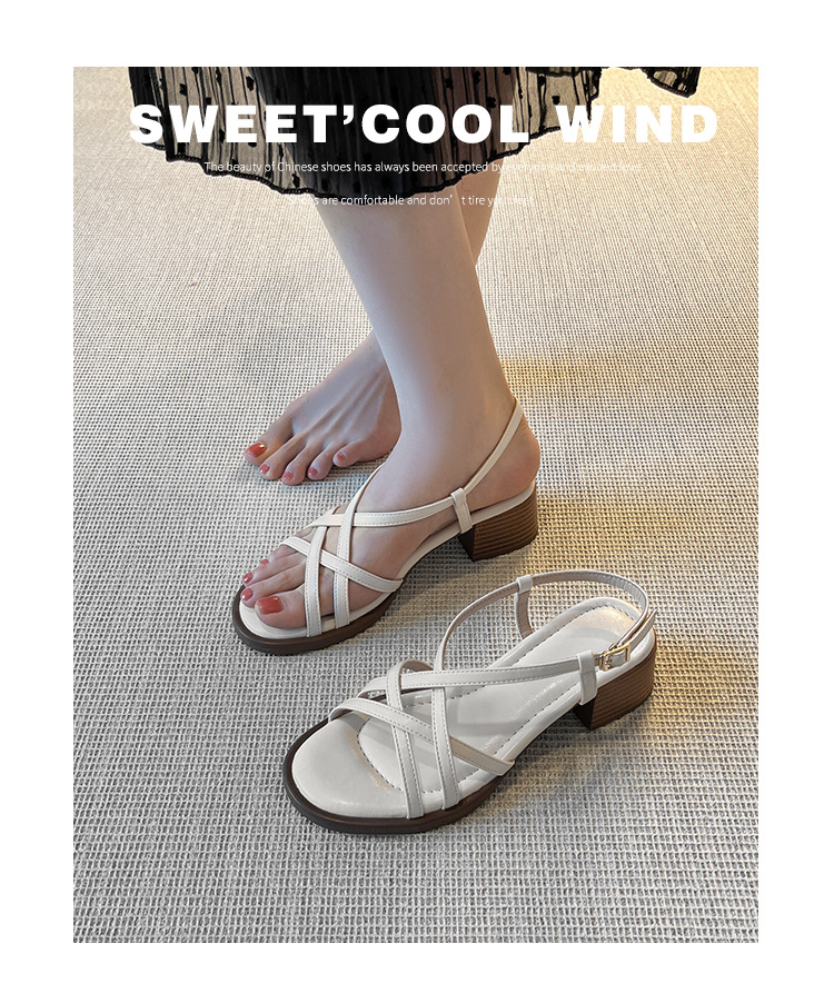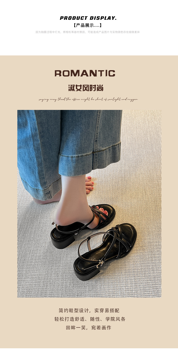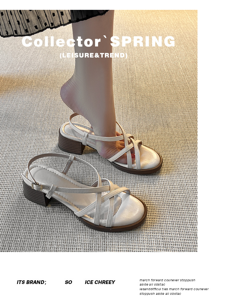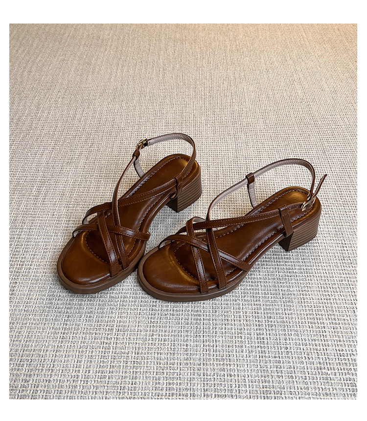 В наличии~~Женские летние новые стильные ретро-тапочки на среднем каблуке с перекрестными ремешками на толстом каблуке и тонкими ремешками.