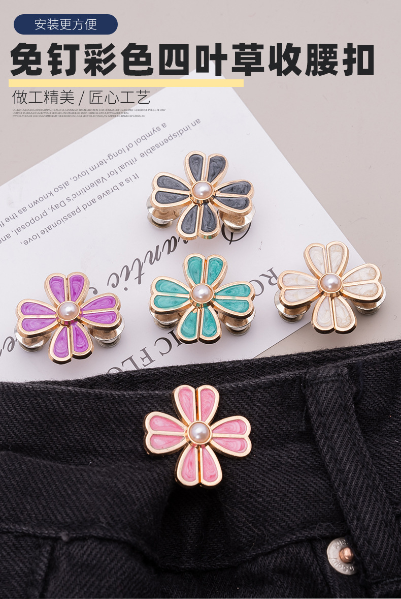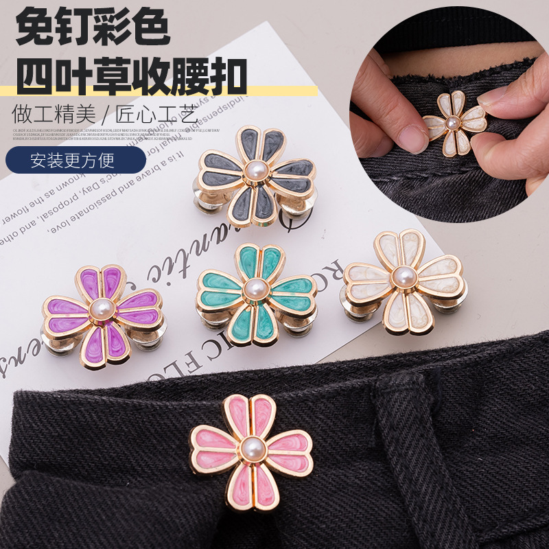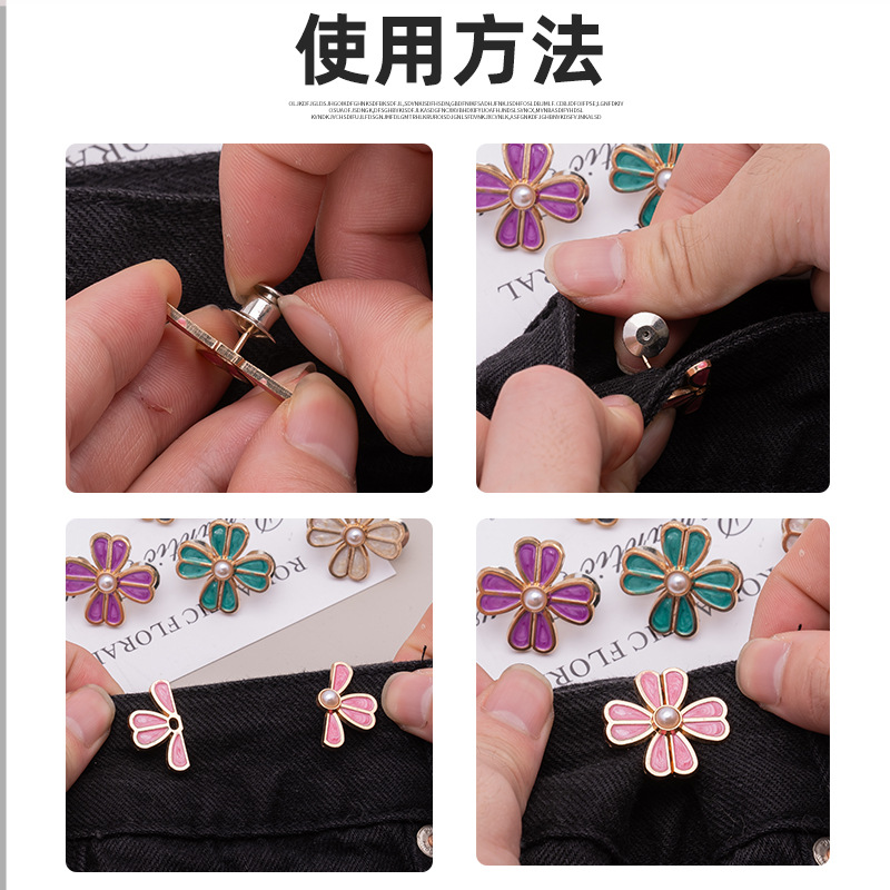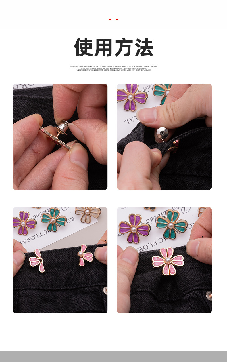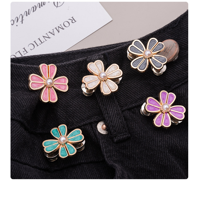 Джинсы с цветочной пуговицей на талии, пуговицы от больших до маленьких, без шитья, без гвоздей, невидимая пряжка на талии, регулируемая пряжка на талии.