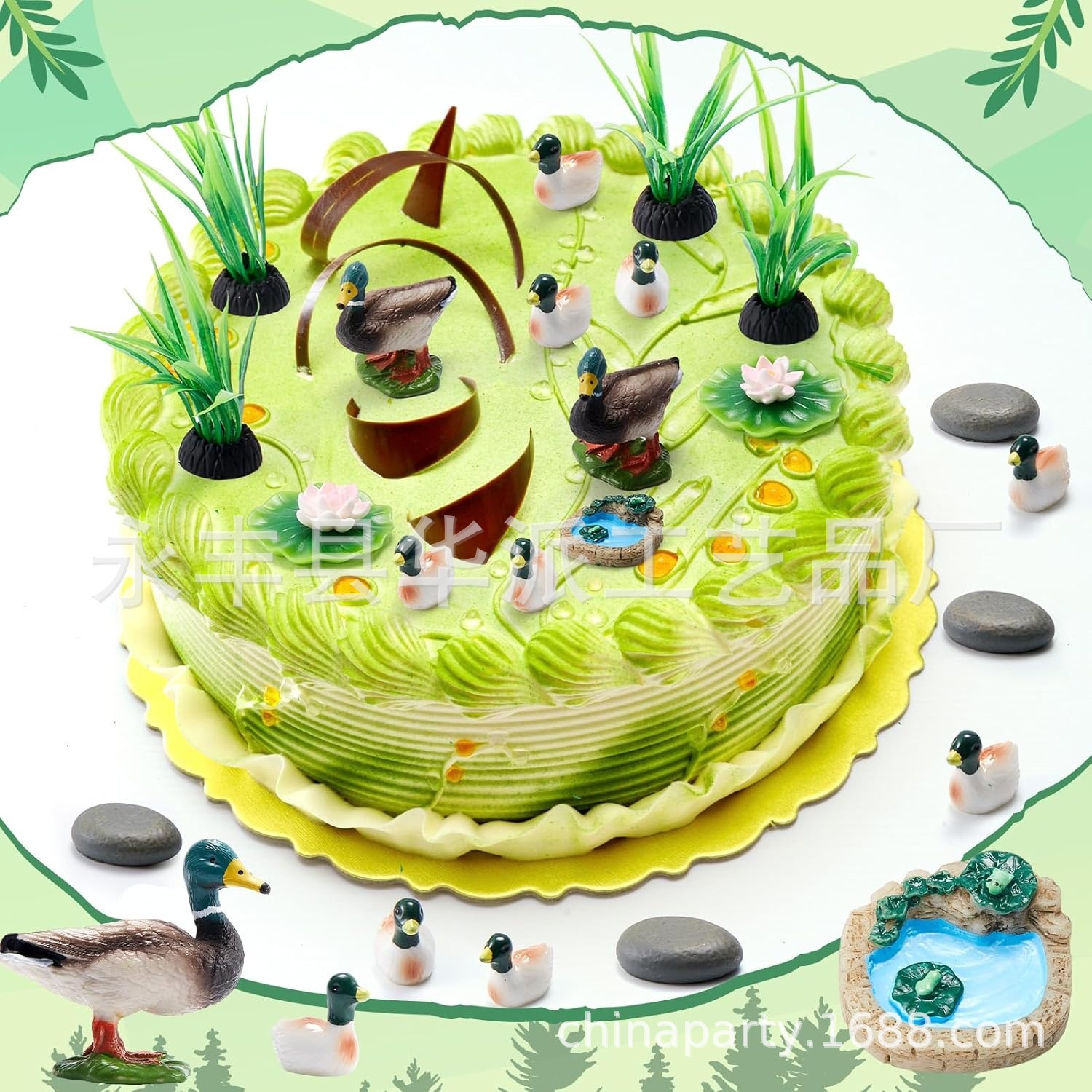 Украшение для торта Lucky Duck на тему вечеринки, водоросли, лотос, украшение для торта на день рождения, реквизит для фотосессии