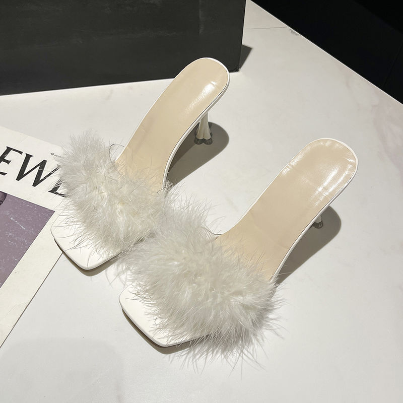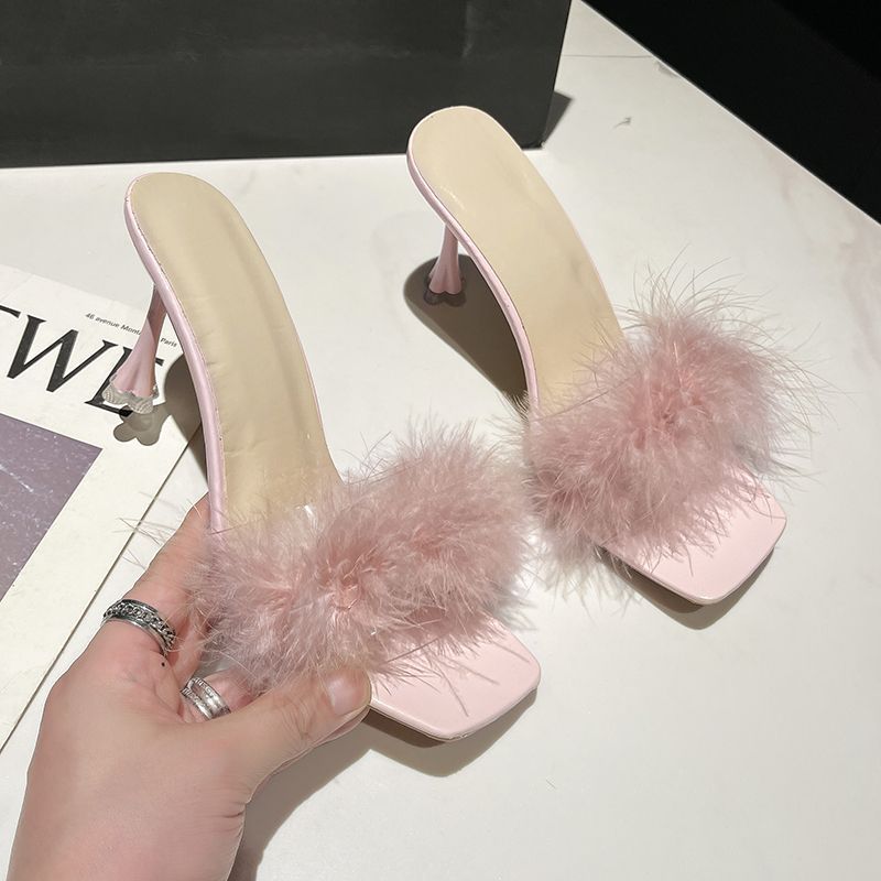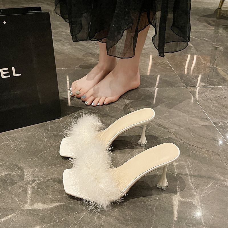 Нишевые меховые тапочки на высоком каблуке для женщин, которые можно носить на улице, новые летние 2025 года, в стиле феи, повседневные универсальные сандалии