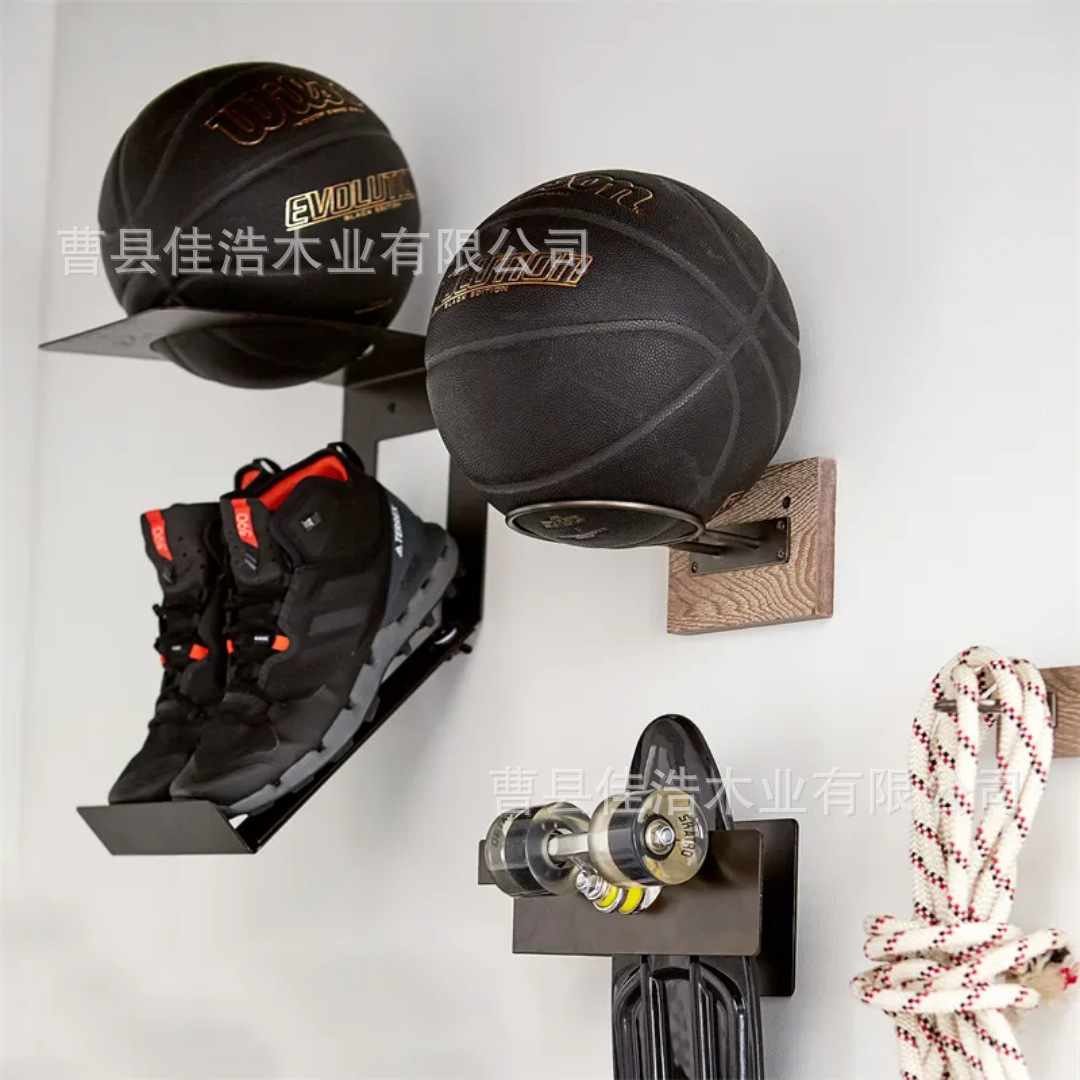 Настенная баскетбольная стойка для помещений, настенная круглая корзина для хранения футбольных мячей, комбинированная стойка для демонстрации спортивных мячей из железа и дерева
