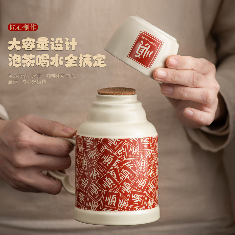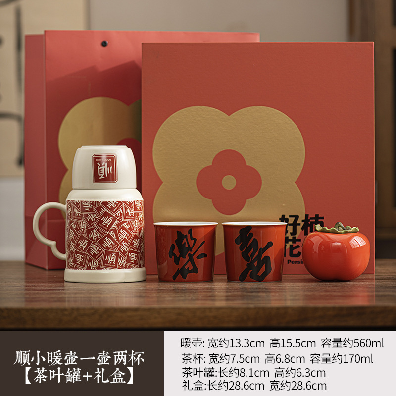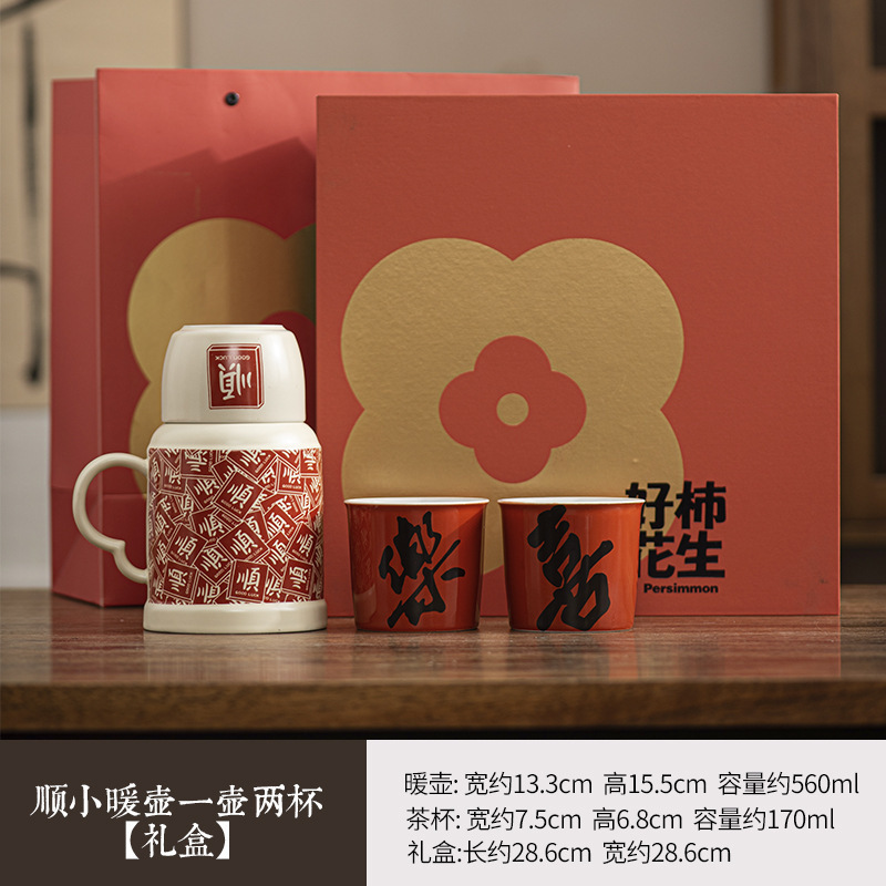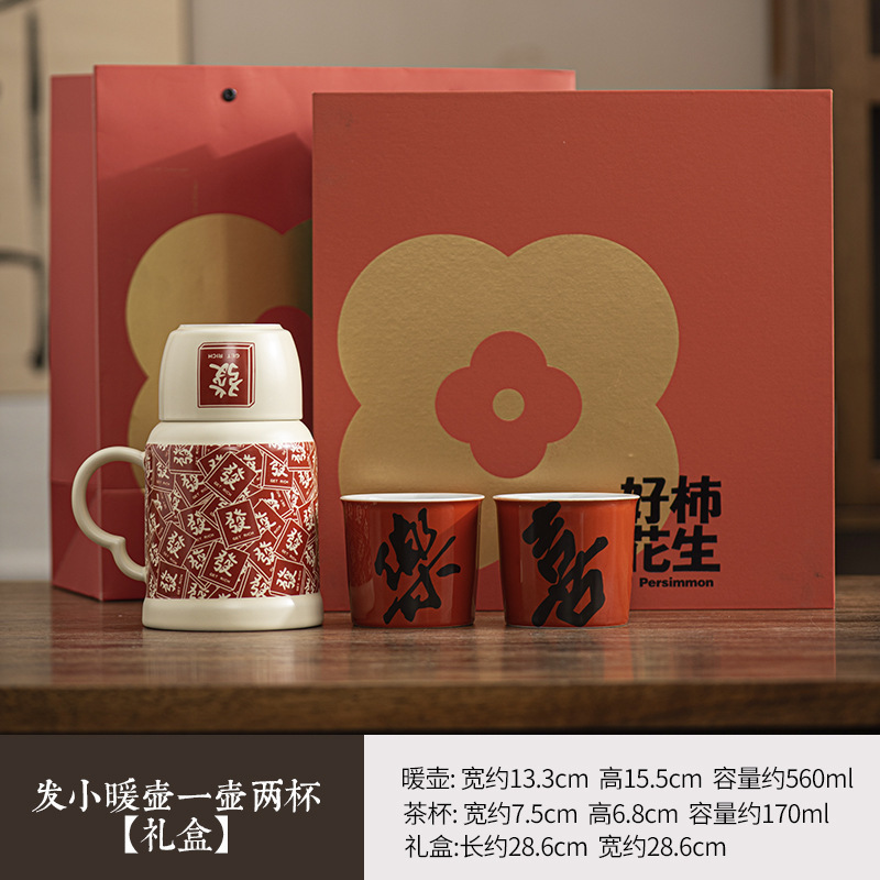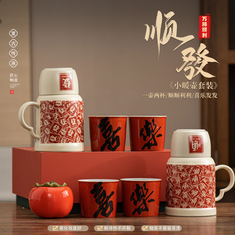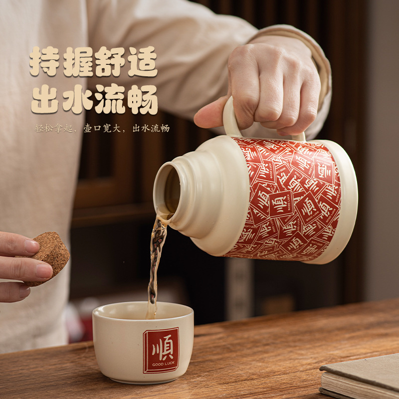2025 новый стиль гладкие волосы маленький термос домашний чайник с крышкой керамическая кружка набор из одной кастрюли и трех чашек сувенир