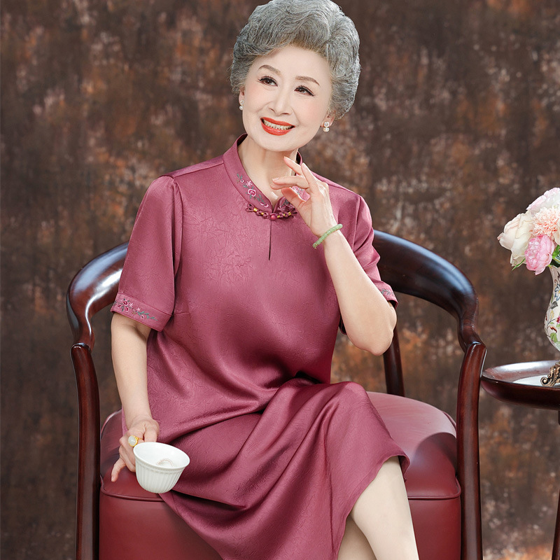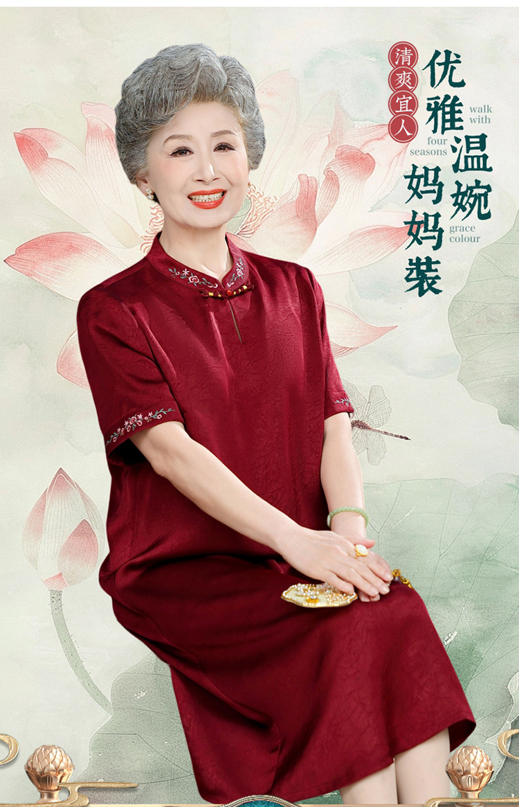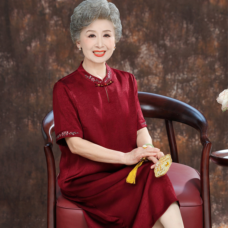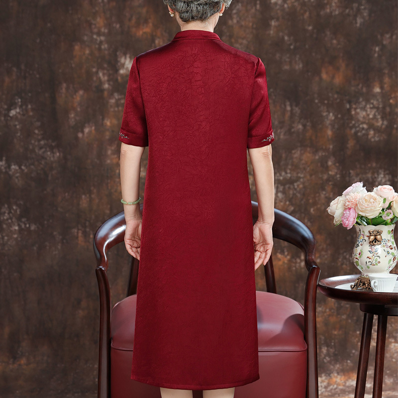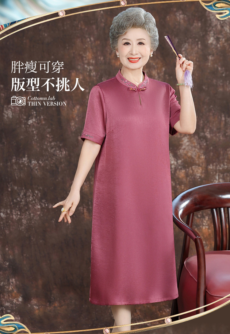 Летнее платье-чонсам средней длины бабушки для женщин, пожилых мам, летний стиль, свободная юбка большого размера с короткими рукавами