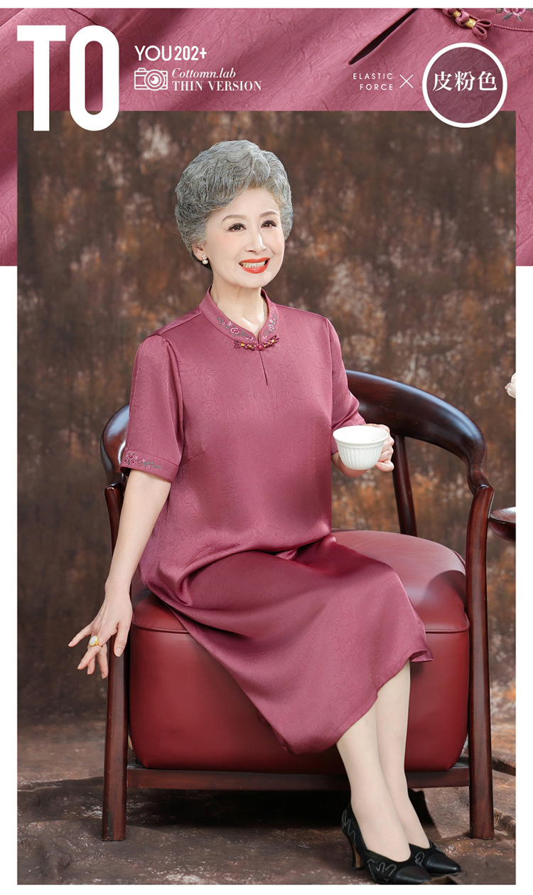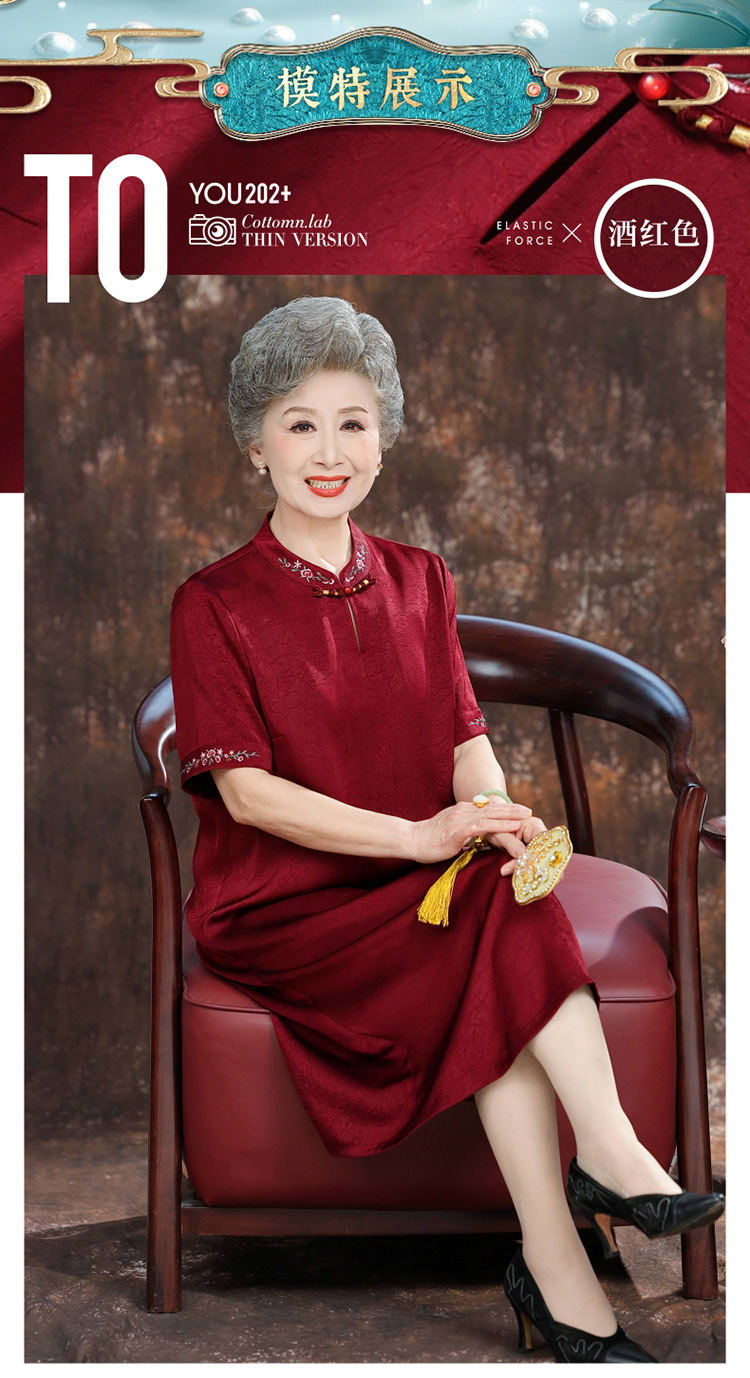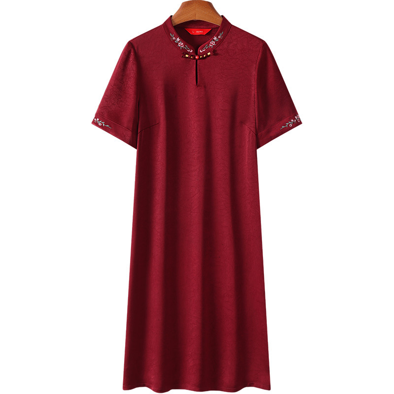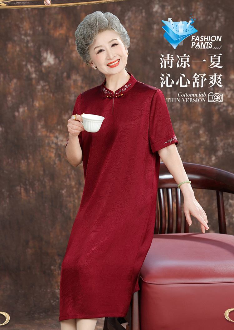 Летнее платье-чонсам средней длины бабушки для женщин, пожилых мам, летний стиль, свободная юбка большого размера с короткими рукавами