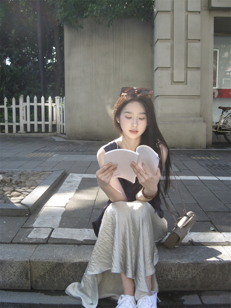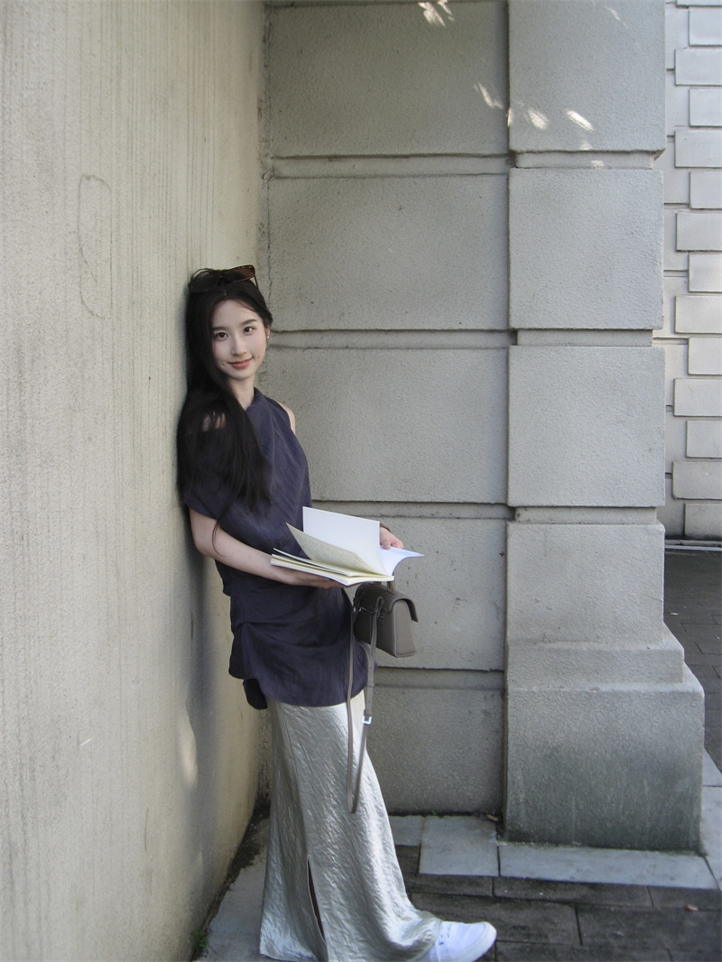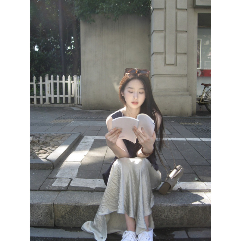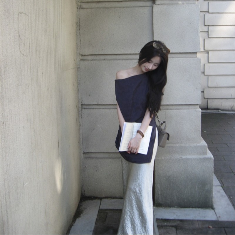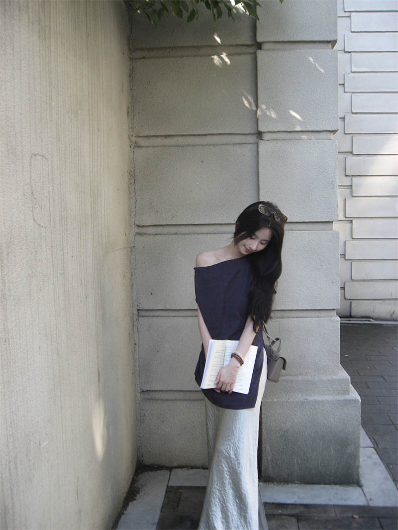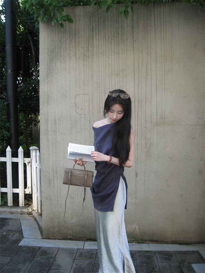 Реальные фотографии и реальные цены # Женский костюм премиум-класса: топ без рукавов с воротником-стойкой и складками, нишевый дизайн.