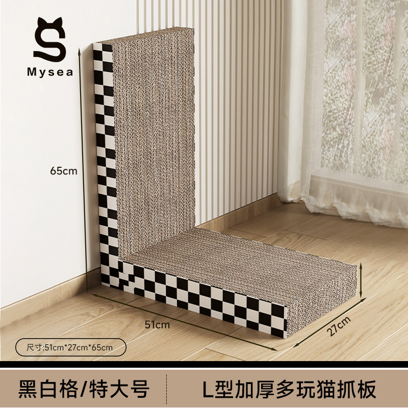 L-образная лежанка-когтеточка для кошек, вертикальный домик для кошек, интегрированная износостойкая большая когтеточка из гофрированного картона, игрушка для кошек, утолщенная и улучшенная.