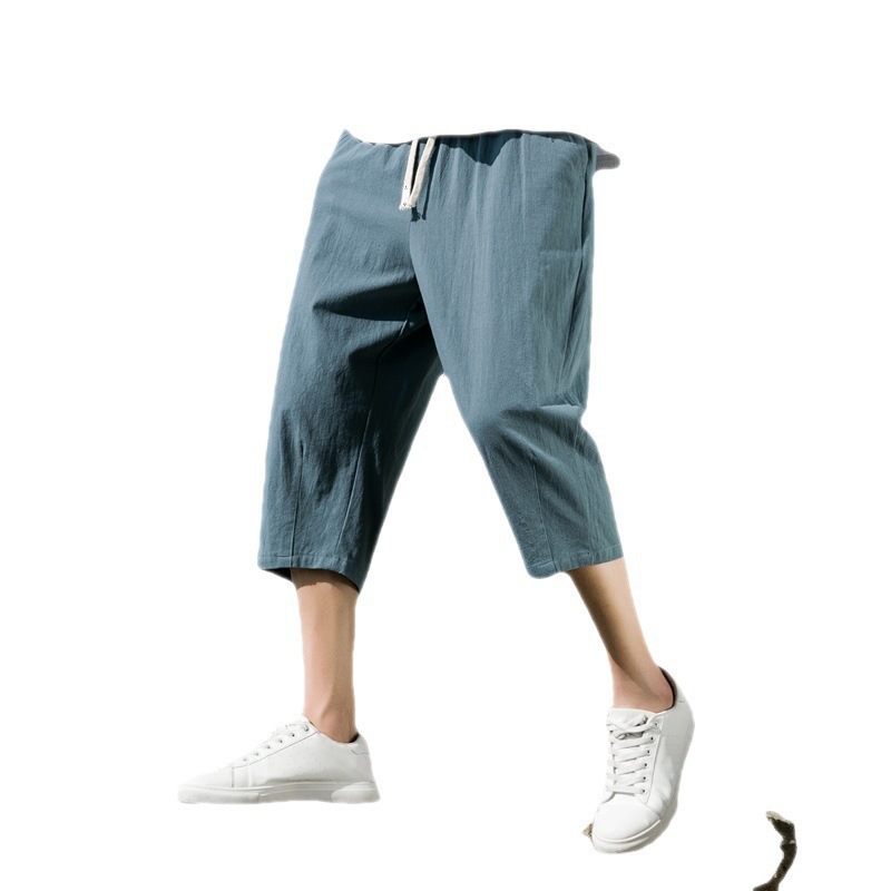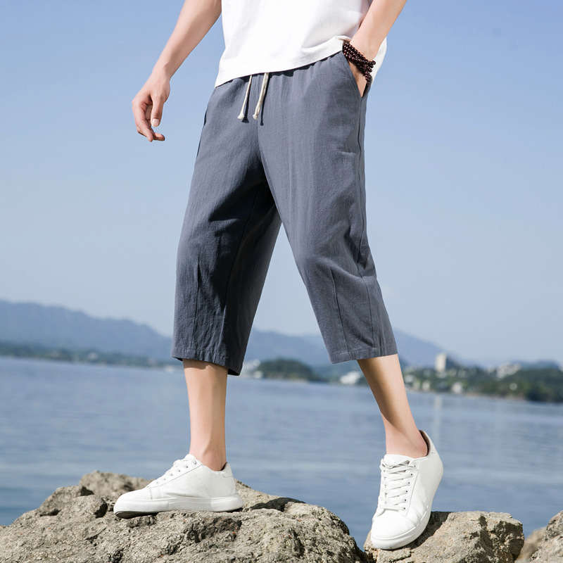 Мужские хлопчатобумажные льняные укороченные брюки мужские летние большие размеры
