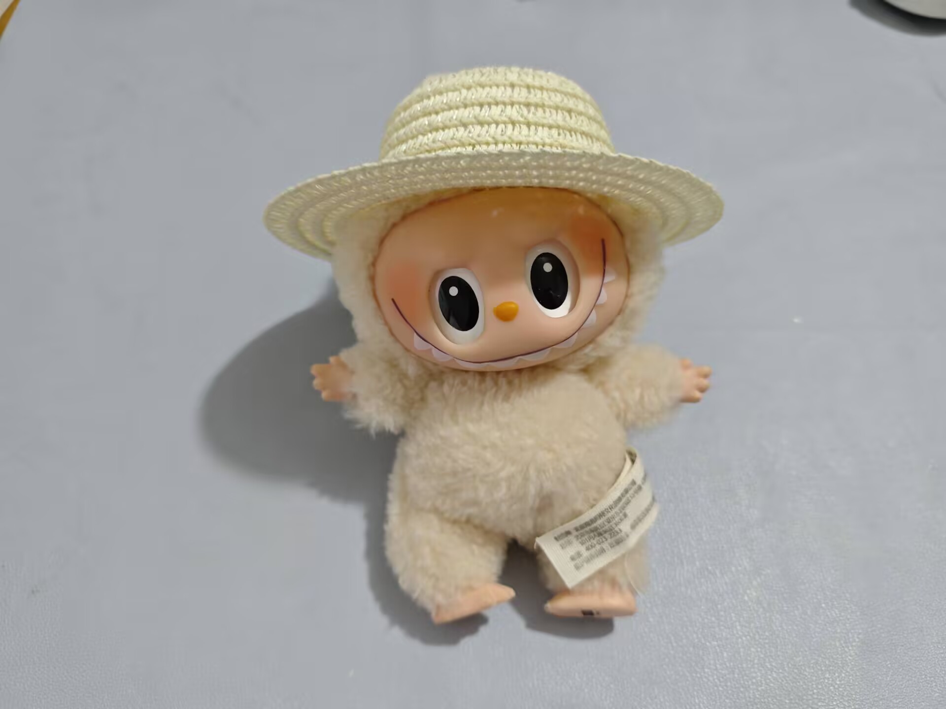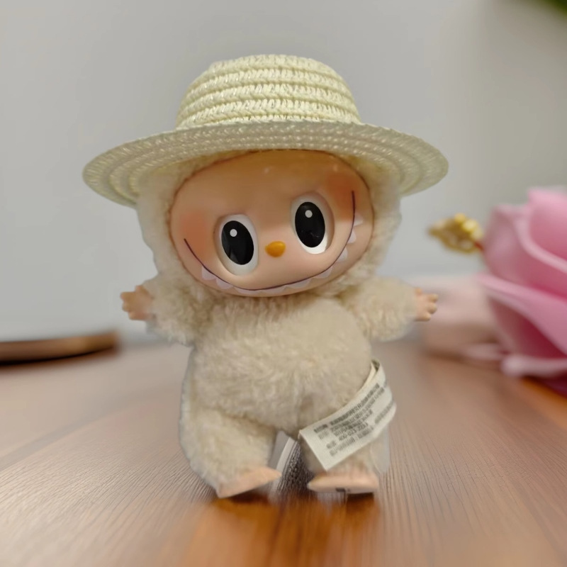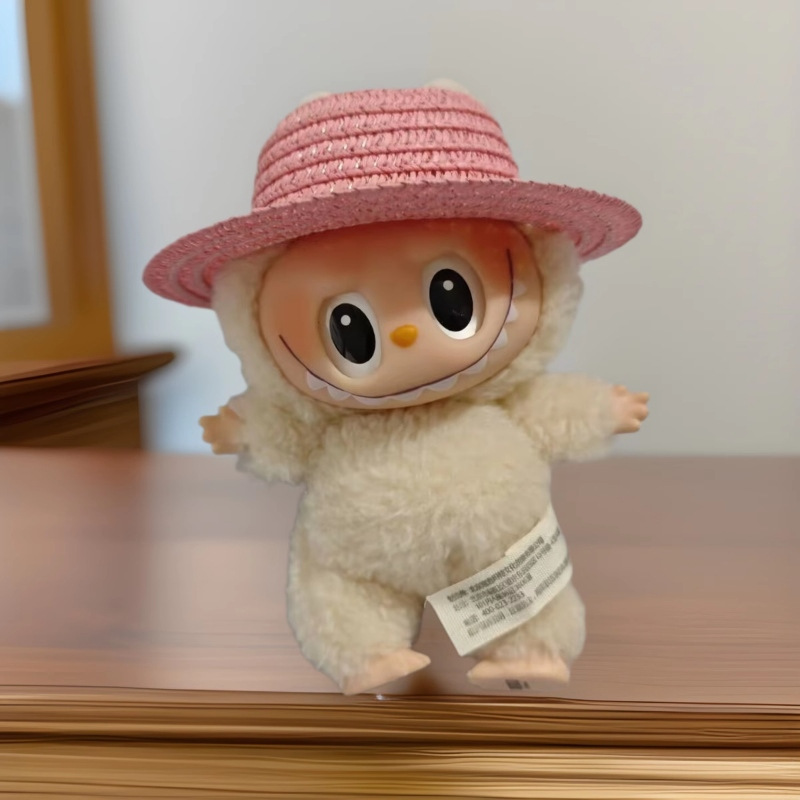 Супер милая соломенная шляпа, кукла LABUBU, Labubu, домашнее животное, с дырявым ухом, пустой верх, мини-шляпа, милая кукла, кукольная шляпа