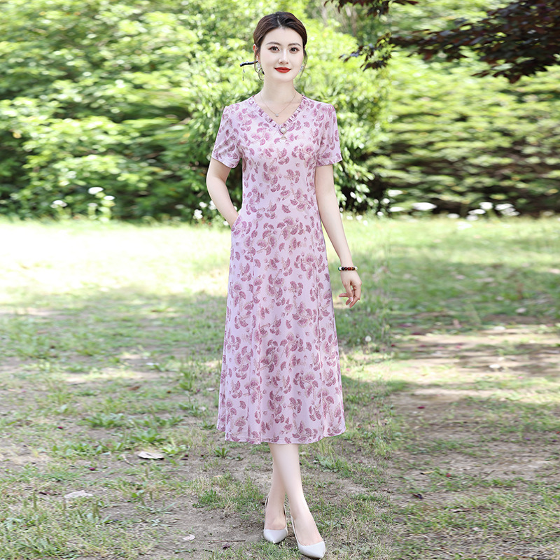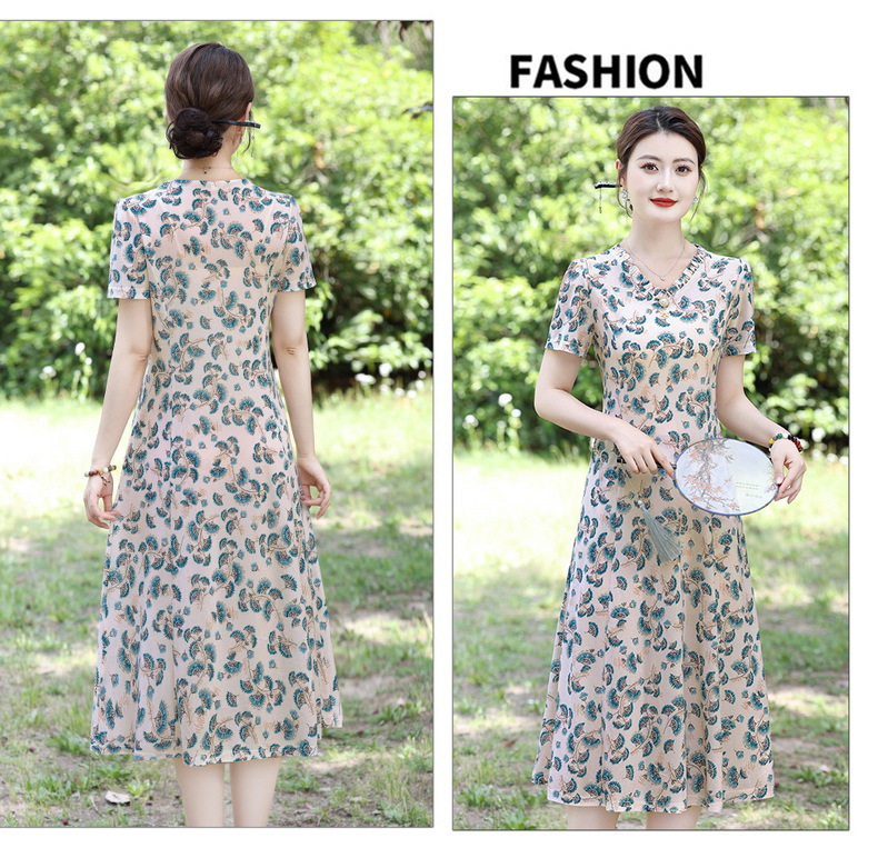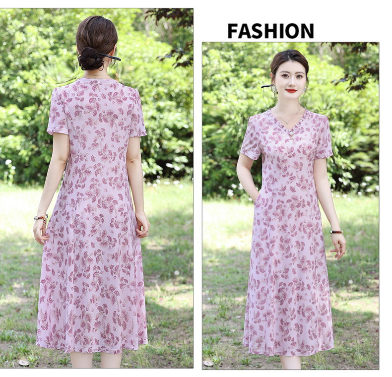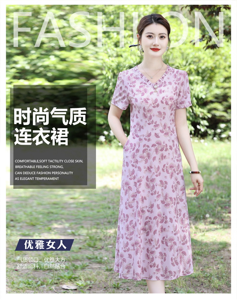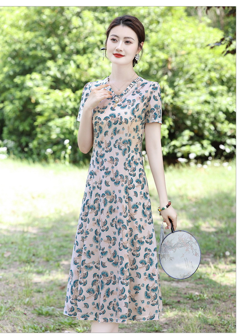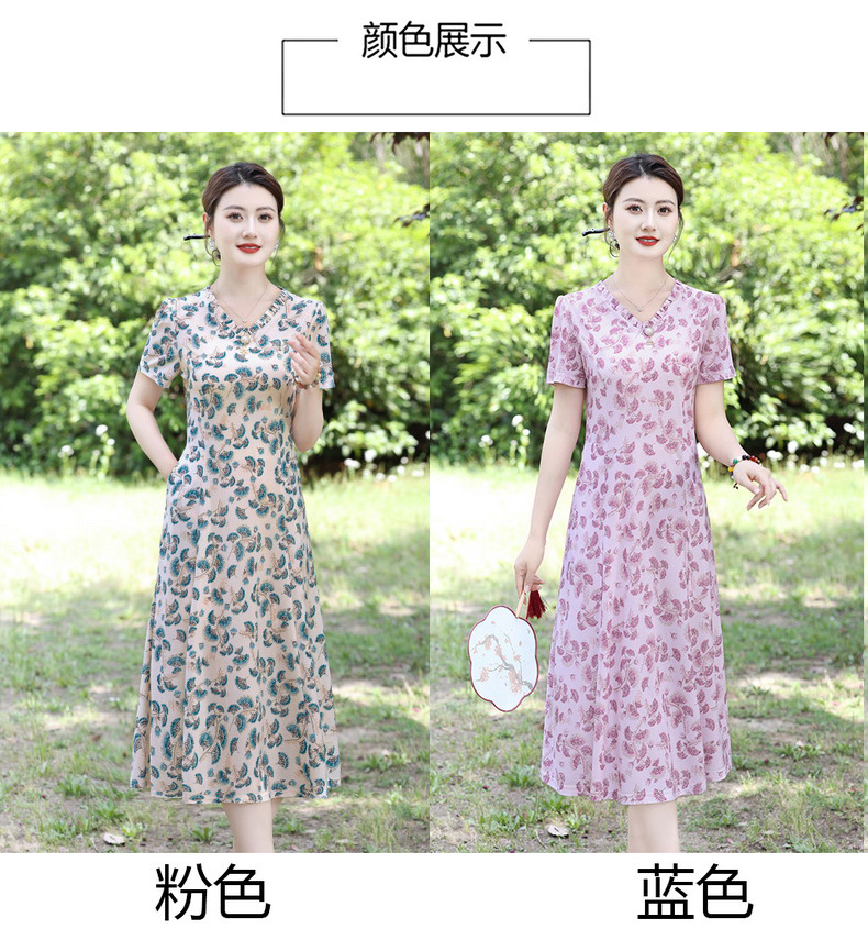 2025 новое платье с короткими рукавами, модное новое платье с цветочным принтом, большой размер, юбка средней длины, закрывающая живот, для похудения