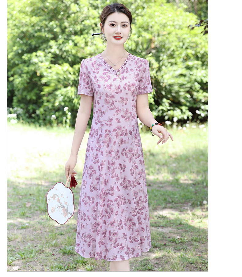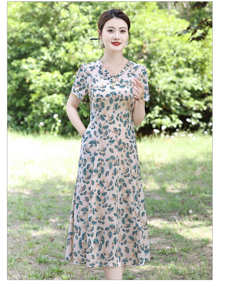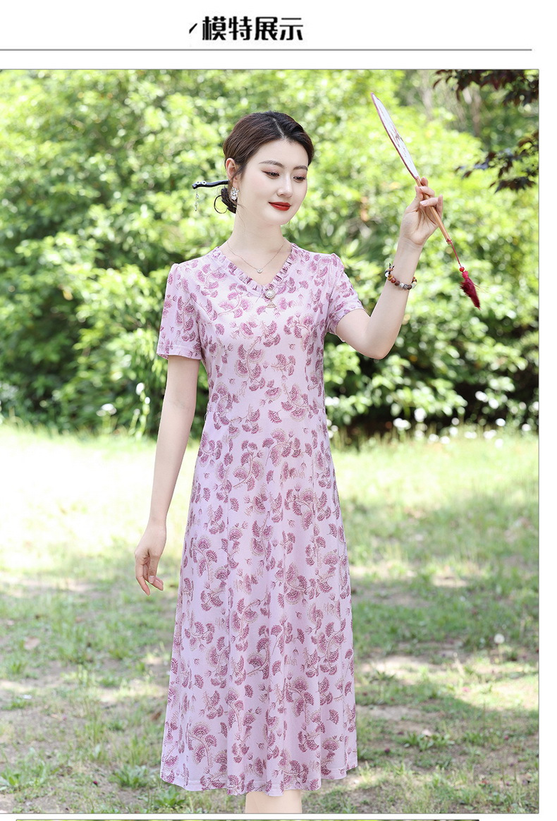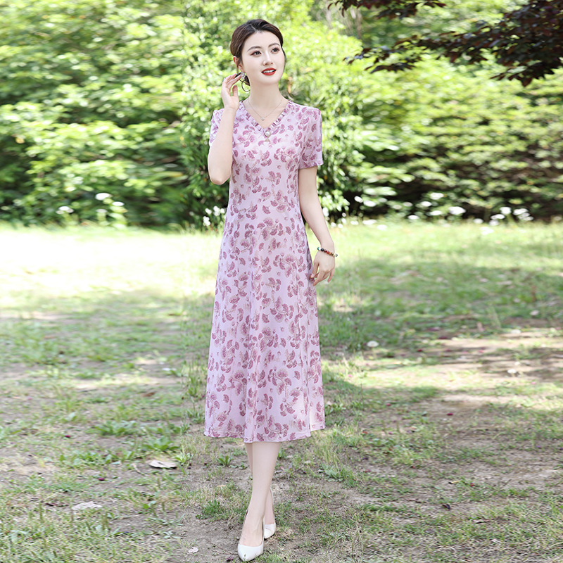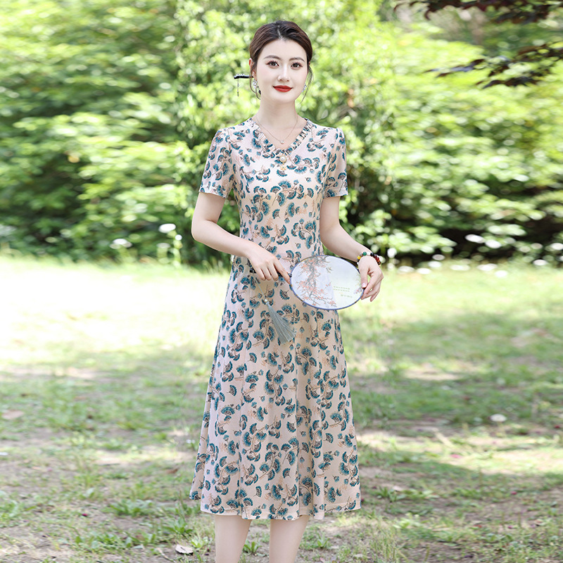 2025 новое платье с короткими рукавами, модное новое платье с цветочным принтом, большой размер, юбка средней длины, закрывающая живот, для похудения