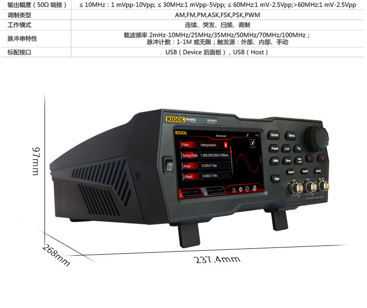 RIGOL Puyuan DG972/992/952 настольный многофункциональный сенсорный экран генератор сигналов произвольной формы
