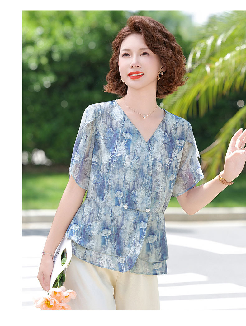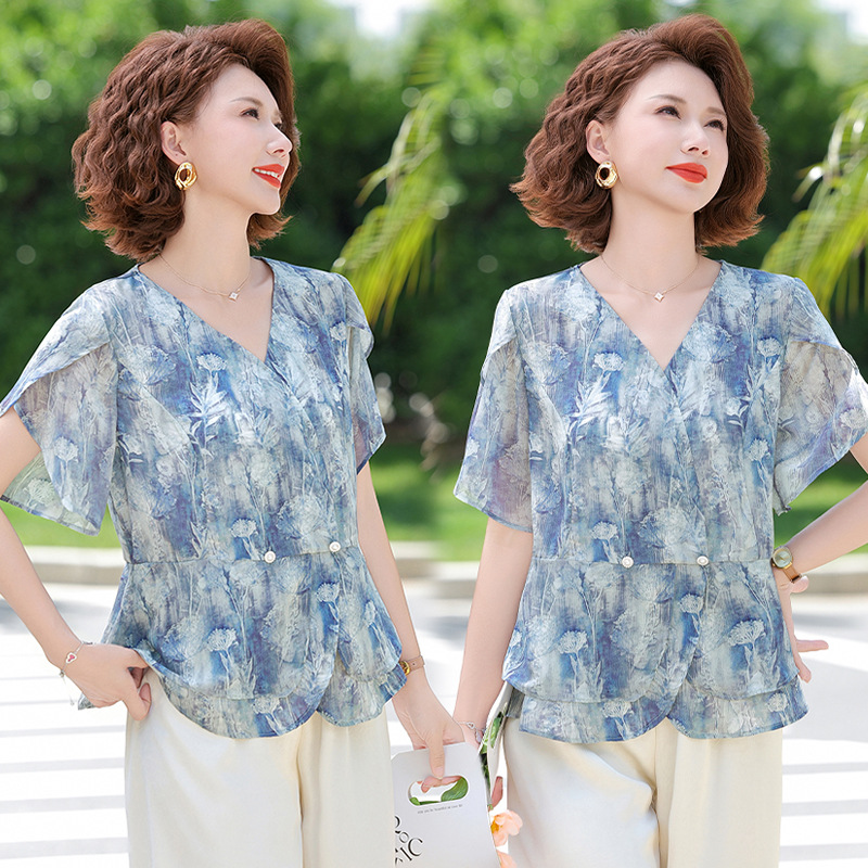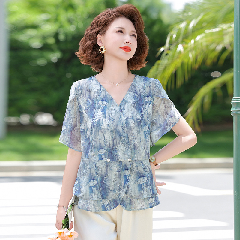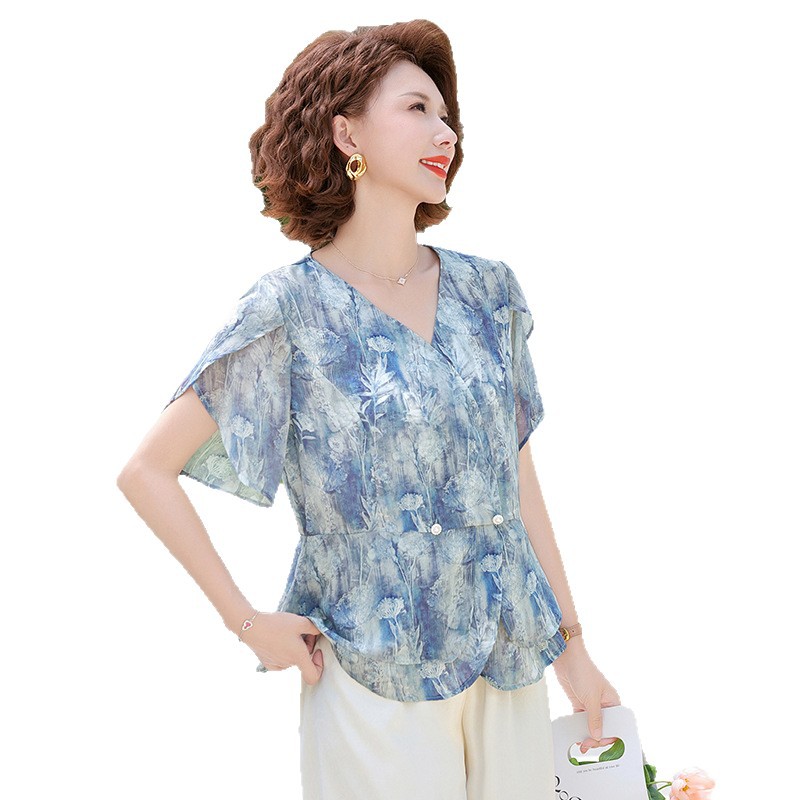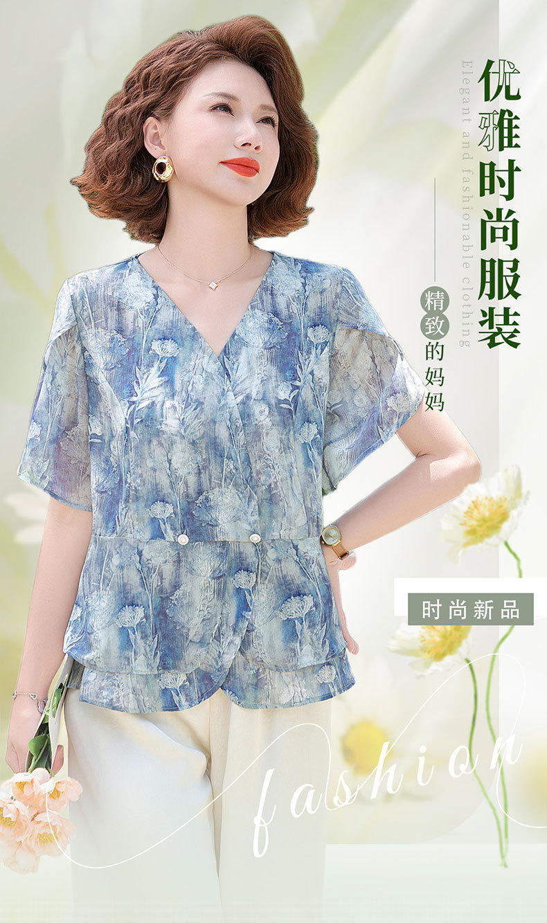 Весенний стиль для 50-летней матери, рубашки с рукавами три четверти, топы для женщин среднего и пожилого возраста, весенне-летние тонкие рубашки с принтом