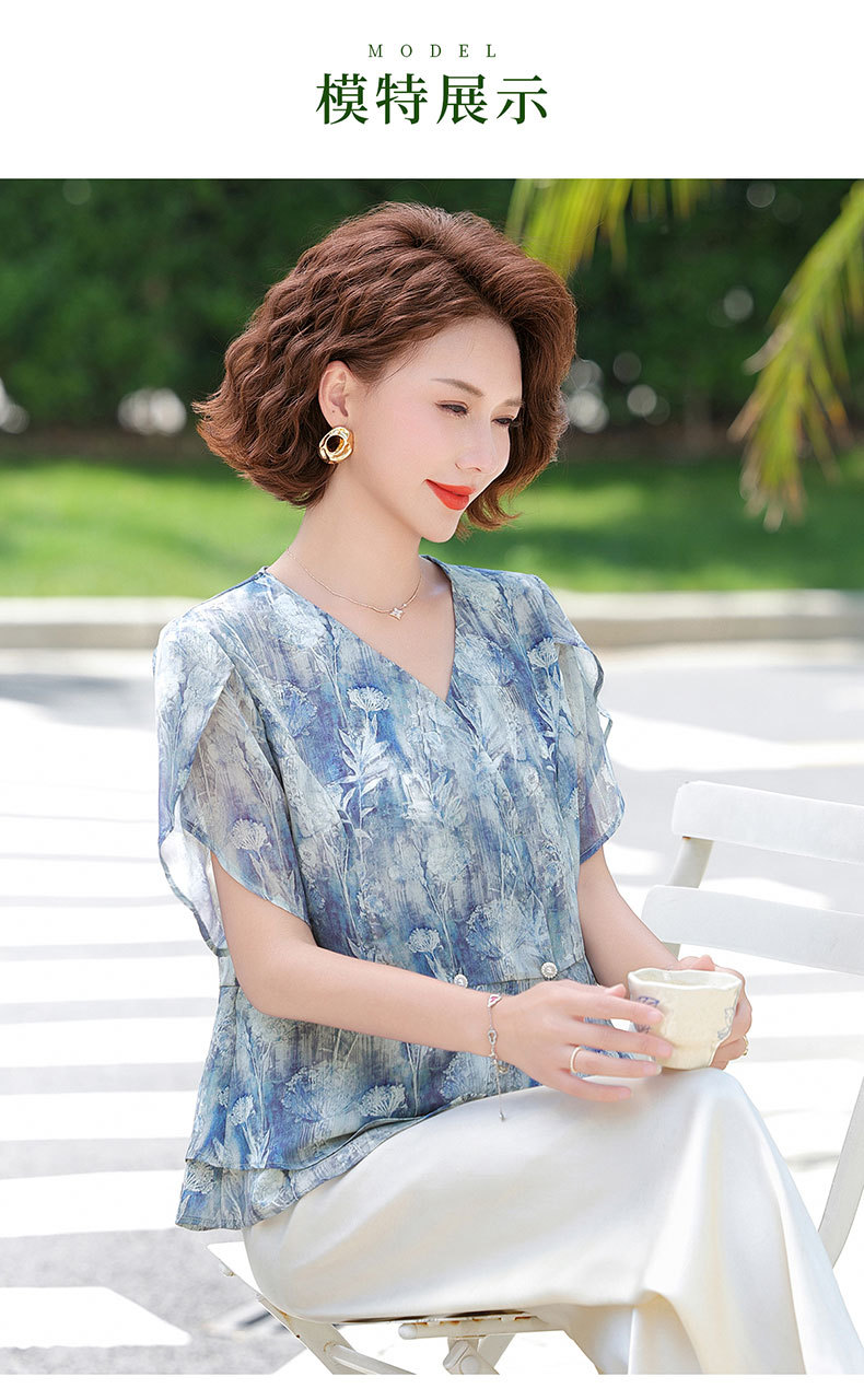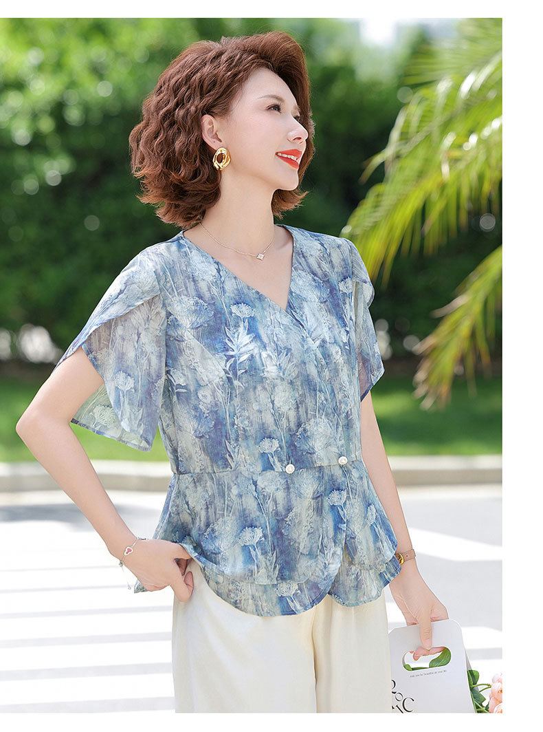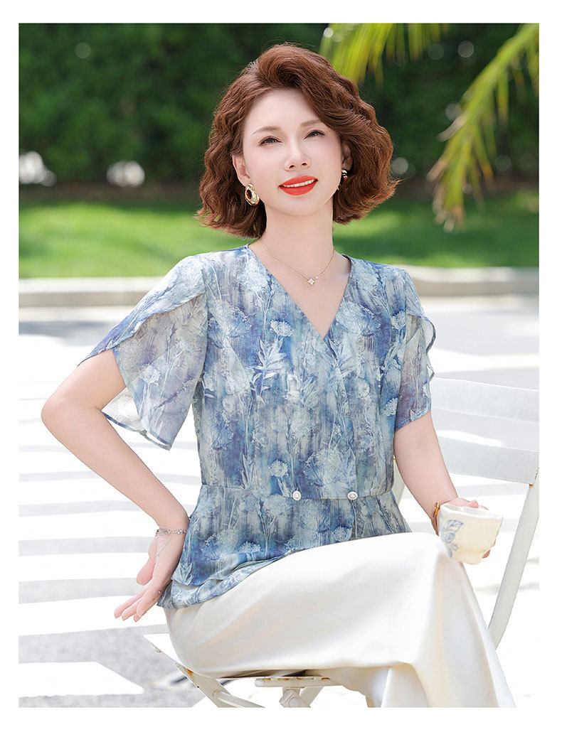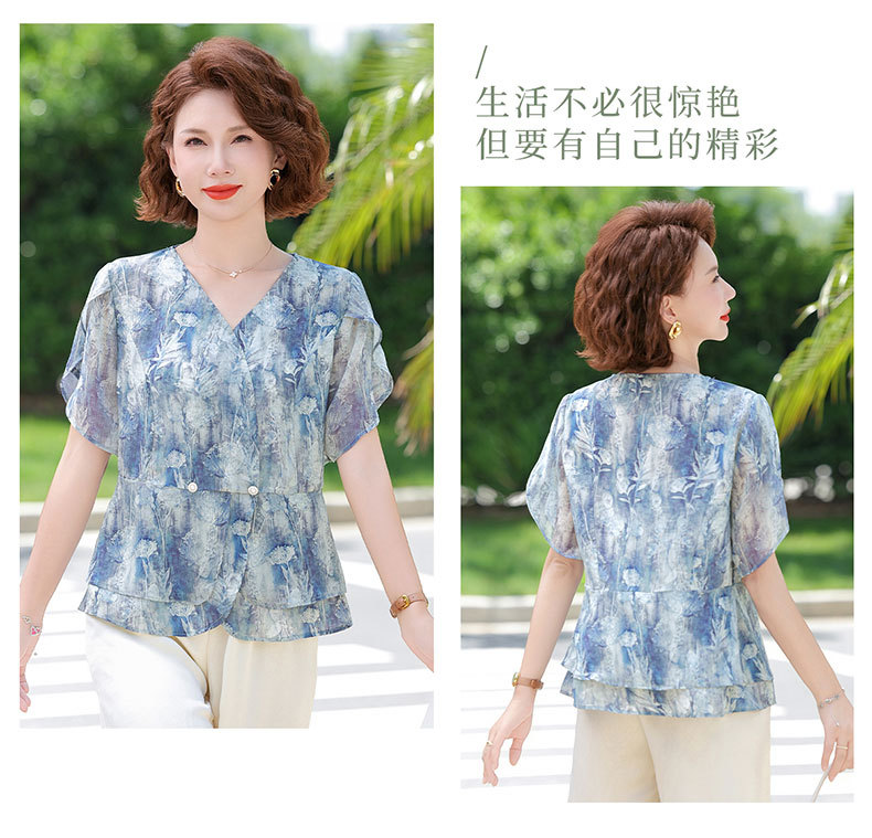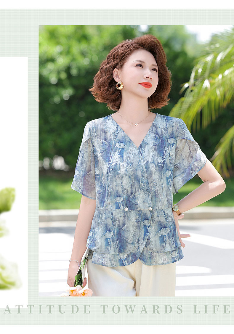 Весенний стиль для 50-летней матери, рубашки с рукавами три четверти, топы для женщин среднего и пожилого возраста, весенне-летние тонкие рубашки с принтом
