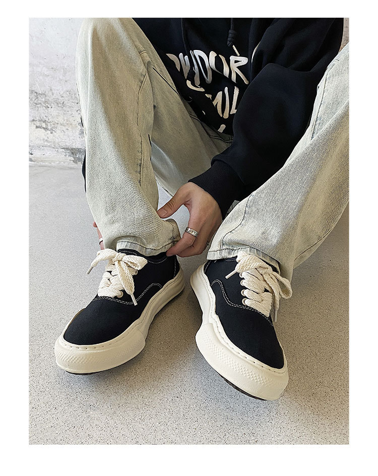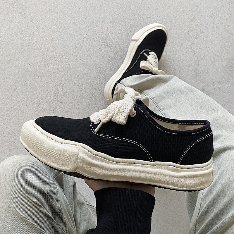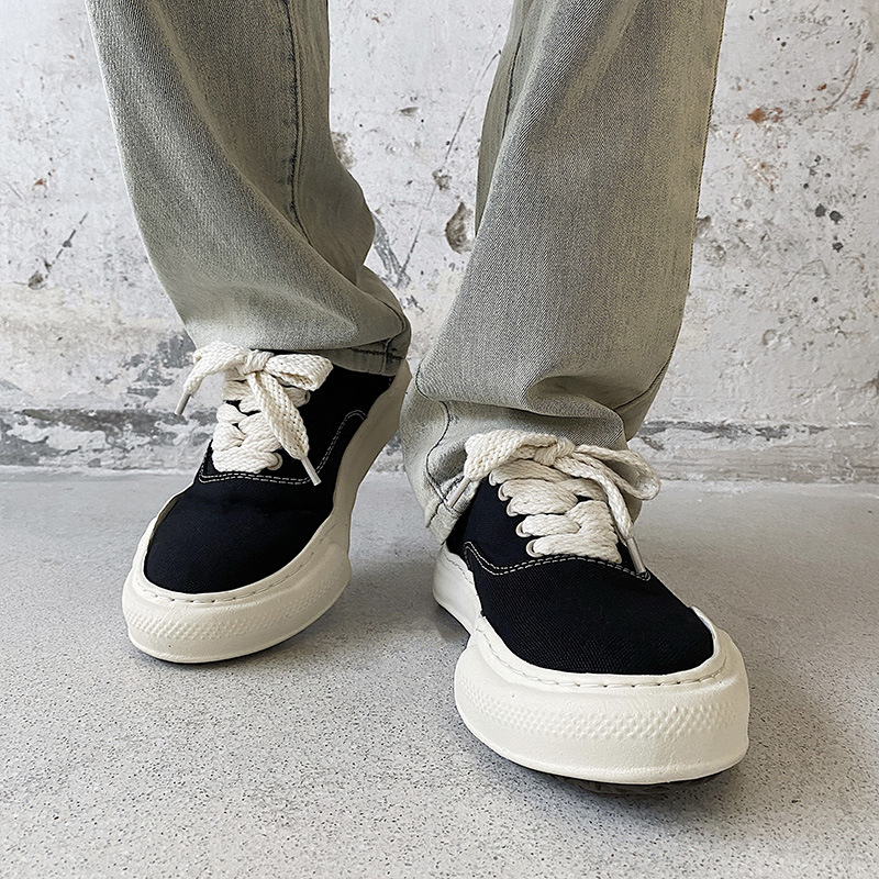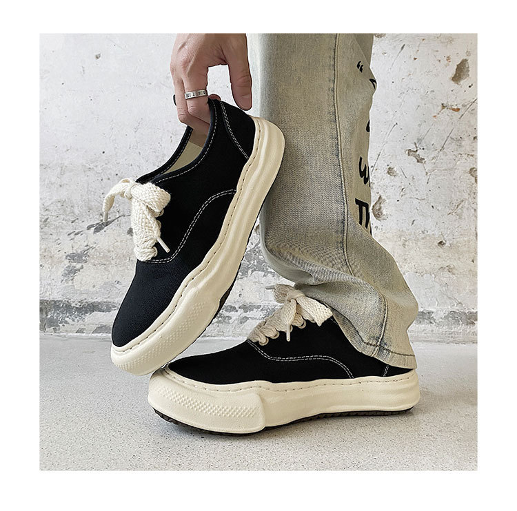 Классические минималистичные парусиновые туфли с низким берцем, нишевые туфли неправильной формы, модные повседневные туфли в японском стиле на толстой подошве, увеличивающие рост